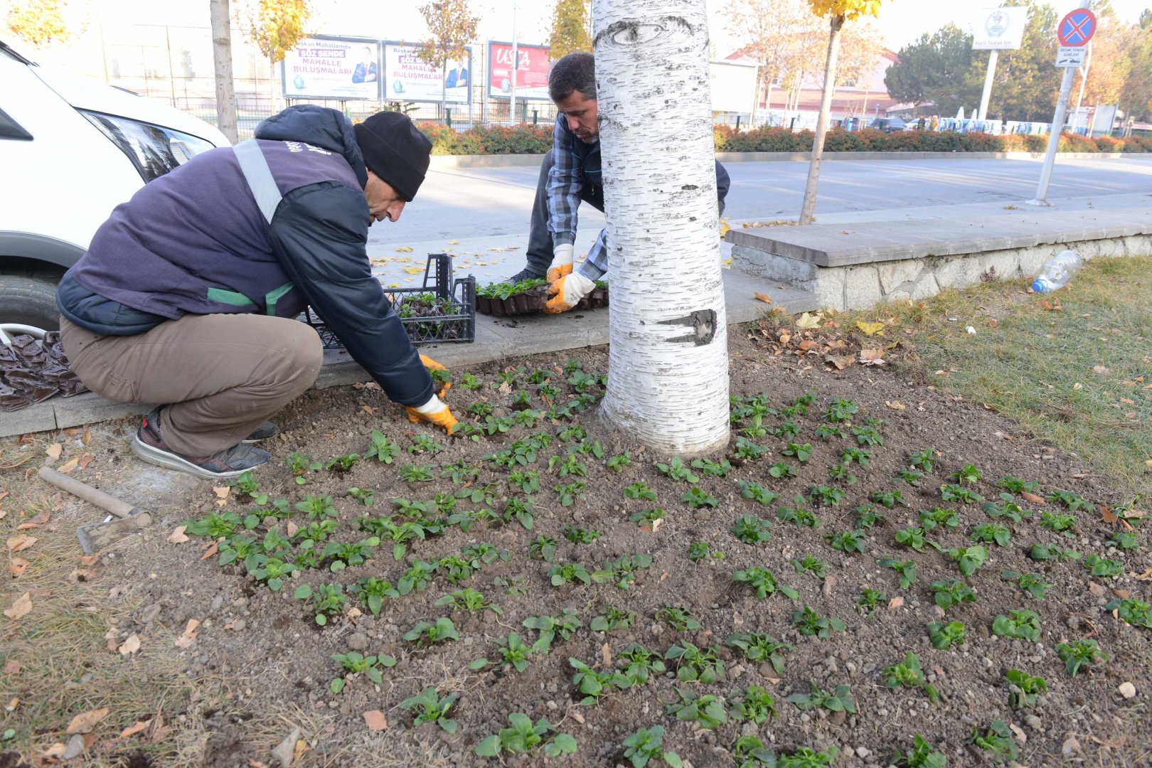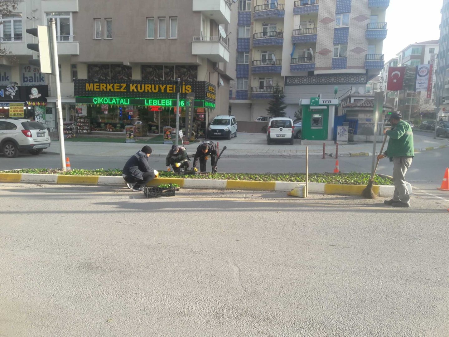 Çorum Belediyesi Park ve Bahçeler Müdürlüğü ekipleri, yeşil alan, refüj, kavşak ve parklarda mevsimlik çiçek dikimine başladı.