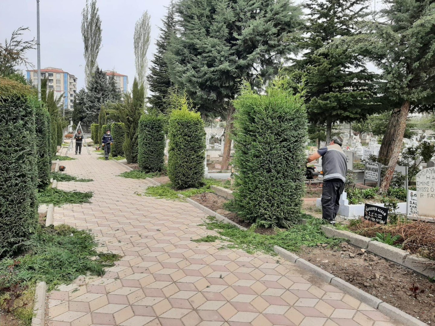 Mezarlıklarda yıl boyu düzenli olarak yaptıkları bakım ve onarım çalışmalarını Ramazan Bayramı öncesi yoğunlaştırdıklarını belirten Belediye Başkan Yardımcımız Turhan Candan, mezarlıkların bayram öncesi pırıl pırıl olacağını söyledi. Candan, “Ulumezarlık, Çiftlik Mezarlığı, Hıdırlık Mezarlığı ve Bayat Mezarlığında ekiplerimiz bakım ve temizlik çalışmaları yaparak mezarlıklarımızı bayrama hazır hale getirdi. Mezarlıkların içerisindeki yabani otlar temizlenirken, yürüyüş yolları ve ağaçların bakımı, bordür boyama ve güllerin bakımları yapıldı.” diye konuştu.