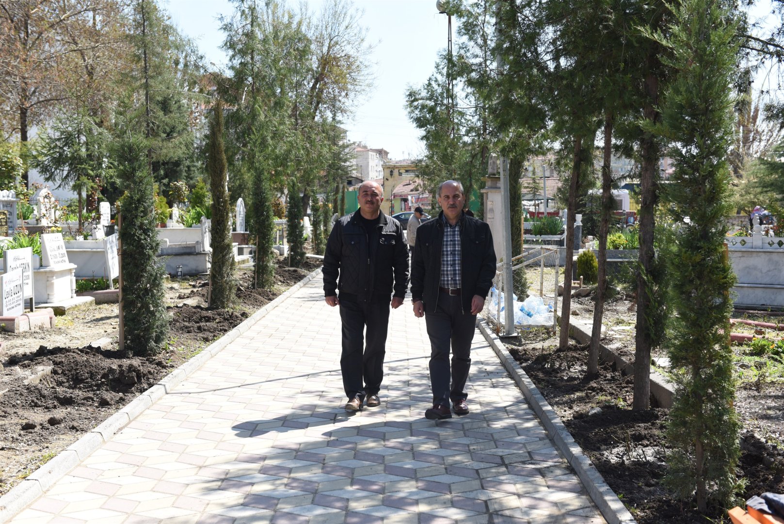 Çiftlik Mezarlığı’nda gül dikim çalışmalarını yerinde inceleyen Belediye Başkan Yardımcısı Ahmet Yabacıoğlu kendisi de gül dikerek, Mezarlıklar Müdürü Aydemir Altınörs’ten çalışmalar hakkında bilgi aldı.