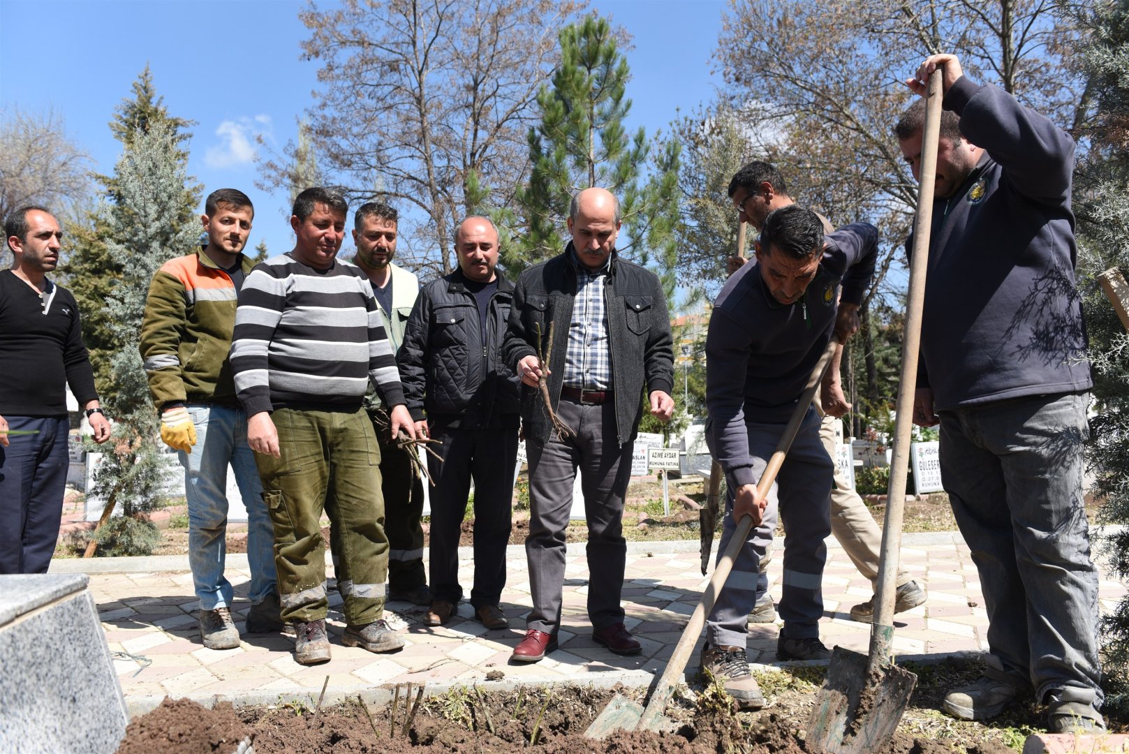 Çorum Belediyesi şehirde bulunan mezarlıklara 5 bin adet gül dikimi gerçekleştirdi.