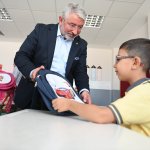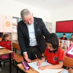 Çantalar, 28 ilkokulun tamamına dağıtılırken Belediye Başkanı Dr. Halil İbrahim Aşgın da Milli Eğitim Müdürü Abdullah Kodek ile birlikte Başöğretmen Atatürk İlkokulu, Mevlana İlkokulu ve Ubeydi Gazi İlkokulu’nda çanta ve kırtasiye malzemesi dağıtımına katıldı. Öğrencilerle sohbet eden Başkan Aşgın, uyum eğitimi gören miniklerin heyecanına ve sevincine ortak oldu.