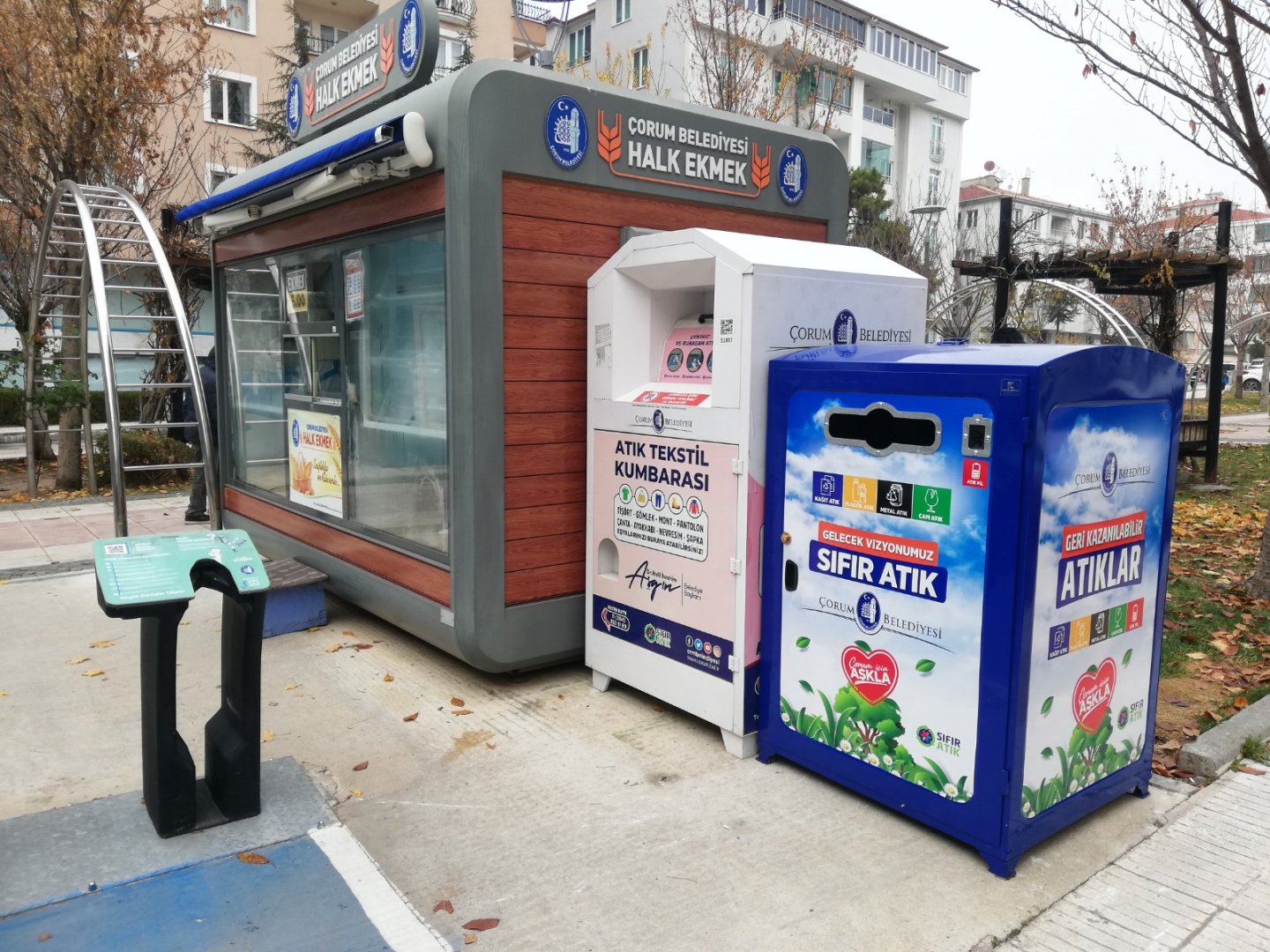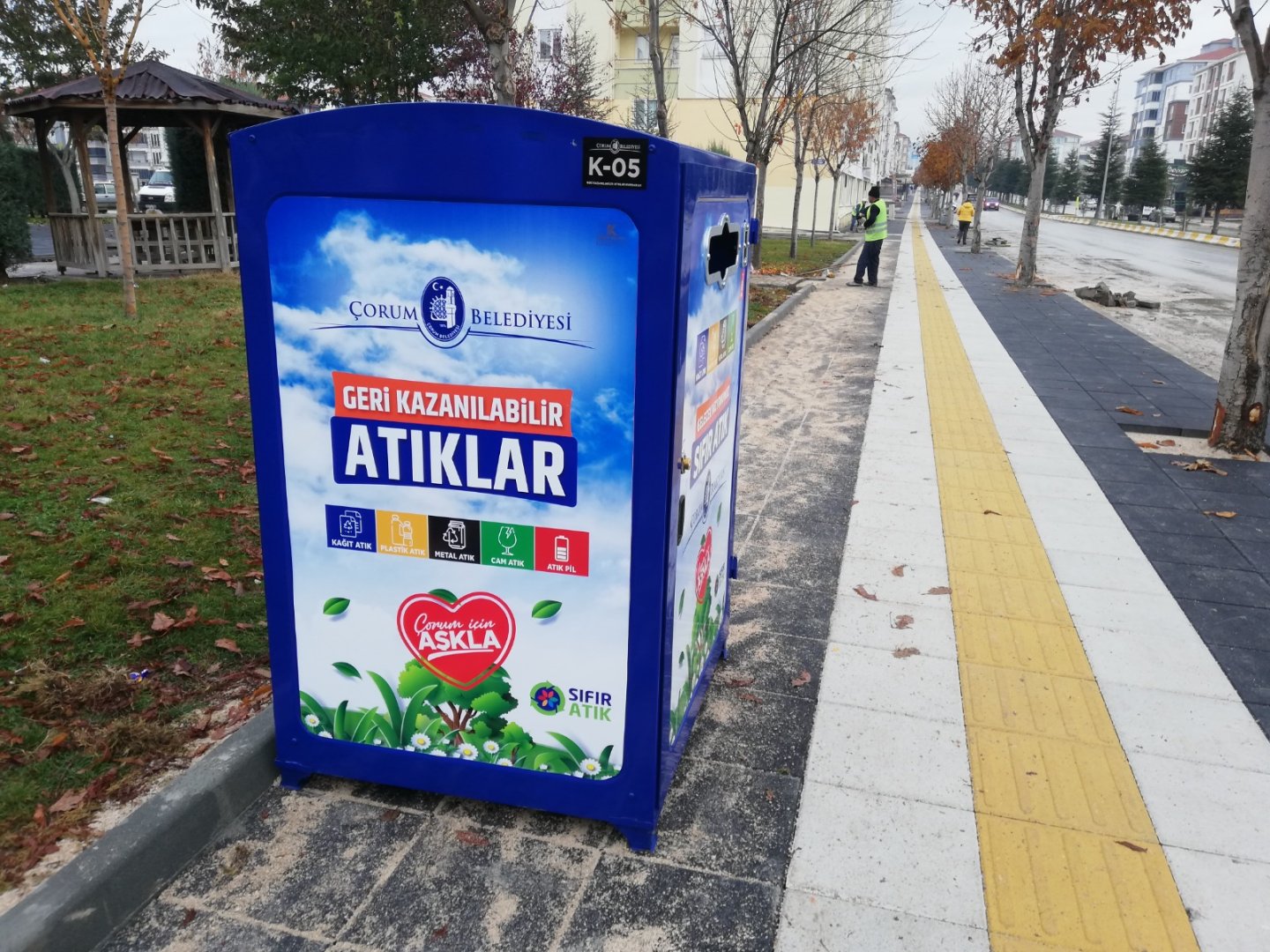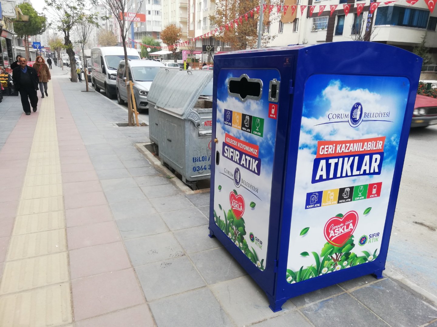Çorum Belediyesi, şehrin çeşitli bölgelerine 20 adet geri kazanılabilir atık kumbarası kurdu.