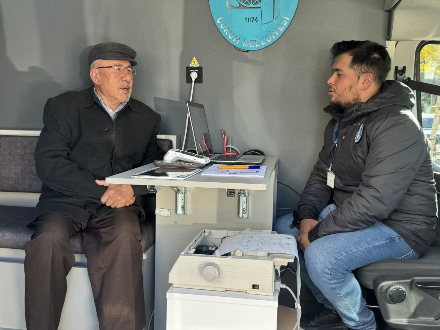 Çorum Belediyesi “Mobil Çözüm Merkezi” ile hizmeti vatandaşların ayağına götürüyor. Borç sorgulama, ödeme, istek ve şikâyetler konusunda mobil araçla vatandaşların işini daha da kolaylaştırıyor.