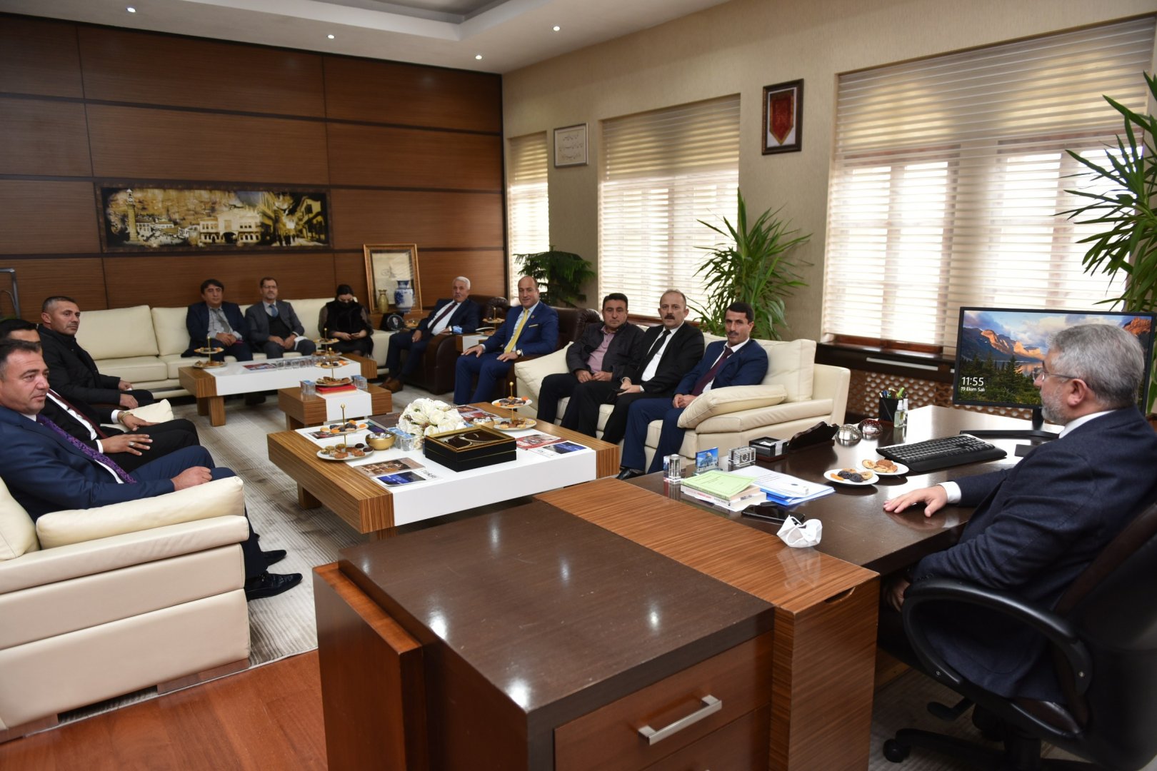 Çorum Muhtarlar Federasyonu Başkanı Zeki Oral, Merkez Köy Muhtarları Dayanışma Derneği Başkanı Hacı Koca ile bazı köy ve mahalle muhtarlarının yer aldığı heyet, Belediye Başkanımız Dr. Halil İbrahim Aşgın’ı ziyaret etti.