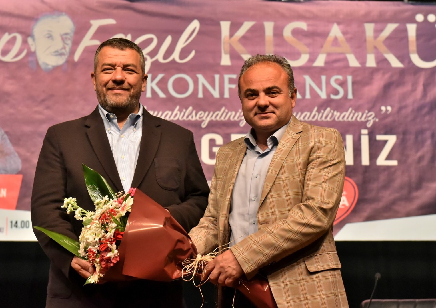 Konferans sonunda Belediye Başkan Yardımcımız Turhan Candan, Kılıçarslan ve Yaşaroğlu’na çiçek takdim etti.
