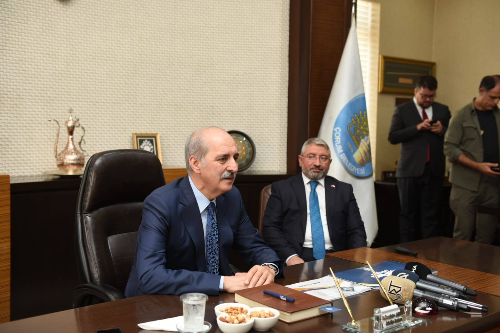 Çorum ziyareti kapsamında ilk durağı Hitit Üniversitesi’nin Akademik Yılı Açılış Programı olan Kurtulmuş daha sonra belediyeyi ziyaret etti.Burada Belediye Başkanımız Dr. Halil İbrahim Aşgın’dan brifing alan Numan Kurtulmuş, “Gönül Belediyeciliği anlayışıyla ilimizde yapacakları çalışmalar hakkında belediye başkanımızla istişarelerde bulunduk. Başkanımız ve ekibine yeni dönemde başarılar diliyorum” dedi.