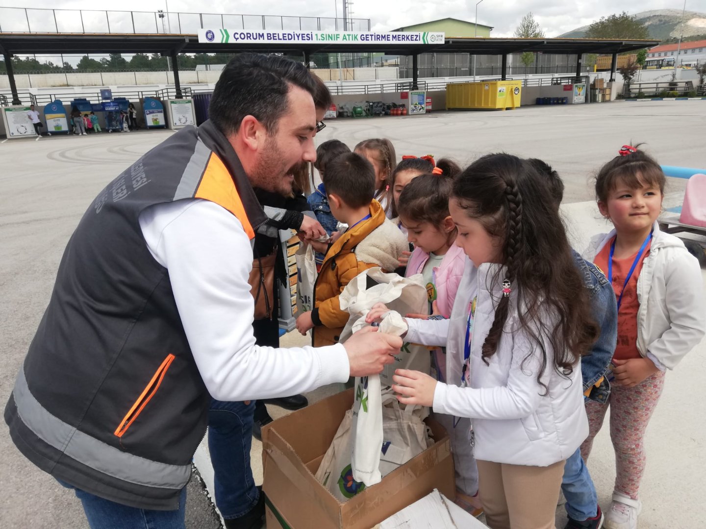 Çiğdem Anaokulu ve 75. Yıl Cumhuriyet Ortaokulu Anasınıfı öğrencileri Çorum Belediyesi 1. Sınıf Atık Getirme Merkezi’ni ziyaret etti.