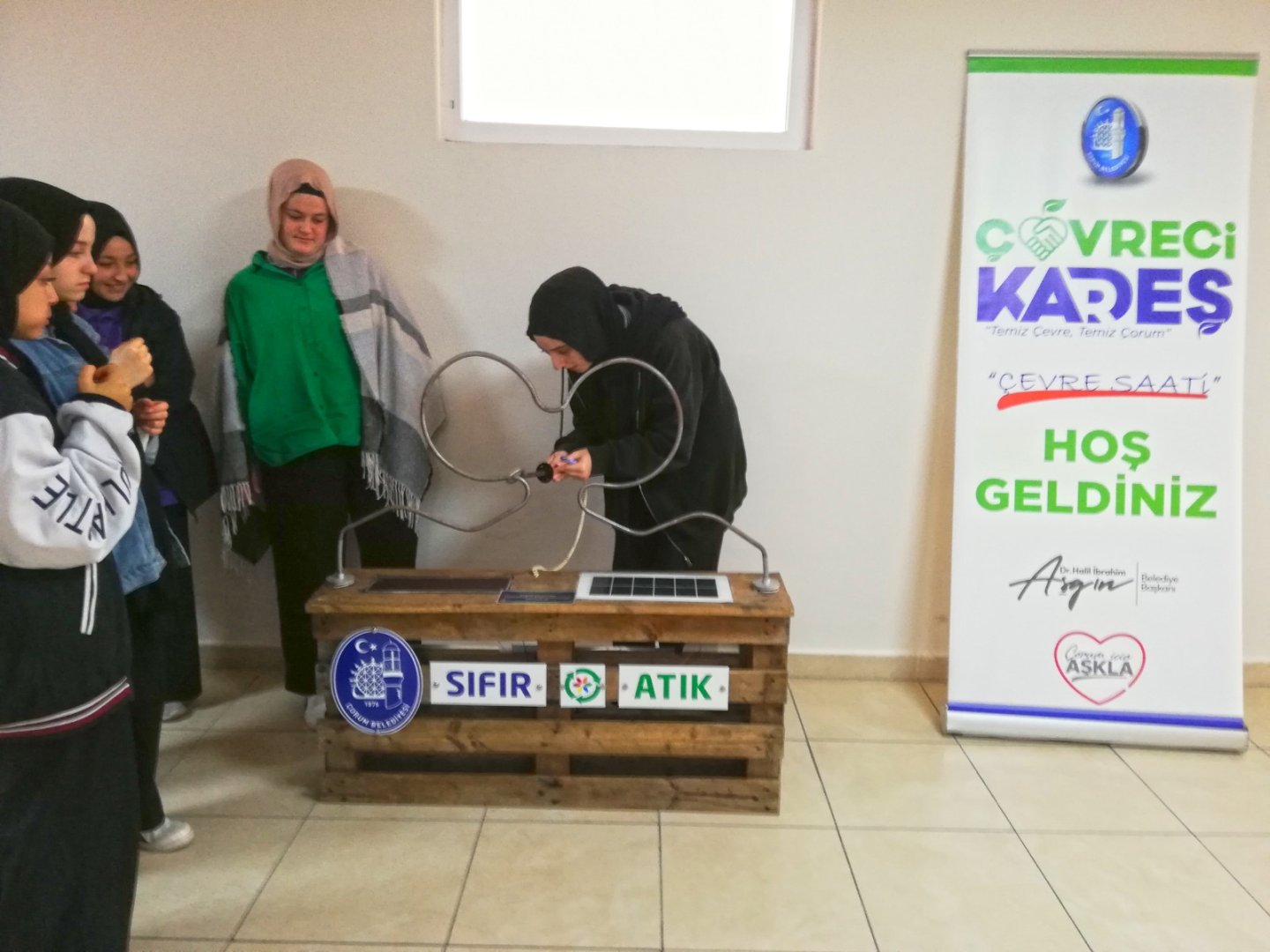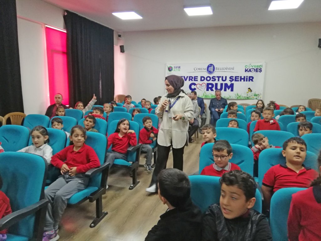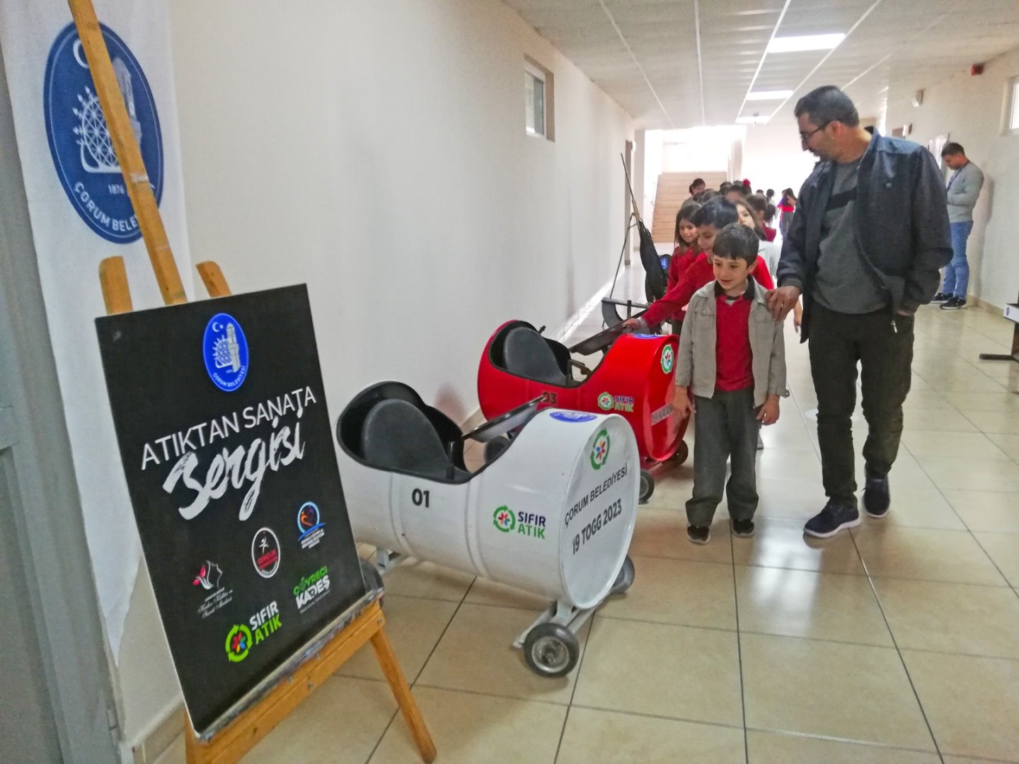 Çorum Belediyesi Temizlik İşleri Müdürlüğü Çevreci Kadeş-Çevreci Kardeş Kulübü geri dönüşüm atölyelerinde atık ve artık malzemelerden yapılan ürünler sergisine öğrenciler yoğun ilgi gösterdi. Atık malzemelerden yapılmış hedef beş oyunu ve dikkat ve koordinasyon oyununda doyasıya eğlendiler.