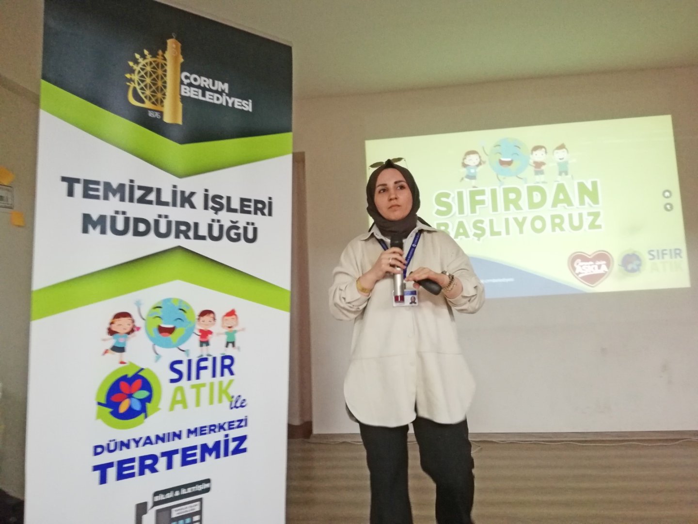 Seminerde atık nedir, atık türleri, sıfır atık nedir, atık pil, bitkisel atık yağ, geri dönüşüm nedir, geri dönüşümün faydaları, israfın önlenmesi, ekonomiye katkı sağlaması, su tasarrufu ve doğal kaynakların verimli bir şekilde kullanılmasının çevre için önemine değinildi. Program sonunda öğrencilere poşet kullanımını azaltmak için bez çanta, sıfır atık boyama kitabı, geri dönüşüm kağıdından yapılmış defter ve tohumlu kalem hediye edildi.