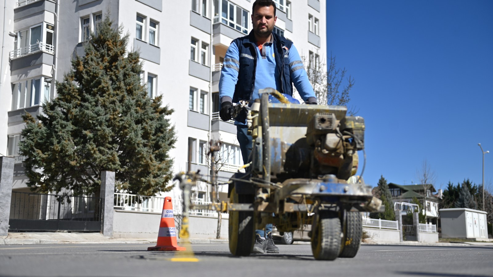 Çorum Belediyesi, kent içi trafiğin güvenliğini sağlamak ve otobüs durakları önüne araç parkını önlemek için çizgi çalışması yapıyor. Şehir genelindeki halk otobüsü duraklarında, yol çizgi çalışmalarıyla hem trafik düzeni sağlanacak hem de yolcuların güvenli iniş ve binişlerine olanak tanınacak. Ekipler, yoğun hatlarda ve ana arterlerde bulunan duraklarda öncelikle çalışmalarını sürdürüyor.