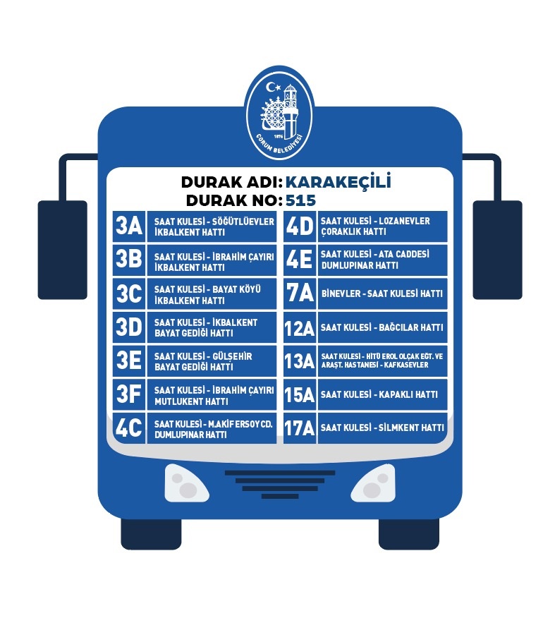 25 Ocak Pazartesi gününden itibaren Saat Kulesi merkez durağından halk otobüslerinin yolcu almayacağını ve indirmeyeceğinin altını çizen Çöplü, “3A, 3B, 3C, 3D, 3E, 3F, 4C, 4D, 4E, 7A, 12A, 13A, 15A ve 17A hatlarımız Recep Tayyip Erdoğan Caddesi yeni merkez duraktan kalkacak ve son seferini bu durakta bitirecek. Diğer hatlarımız ise güzergahları boyunca ring yapacaklar.” diye konuştu.