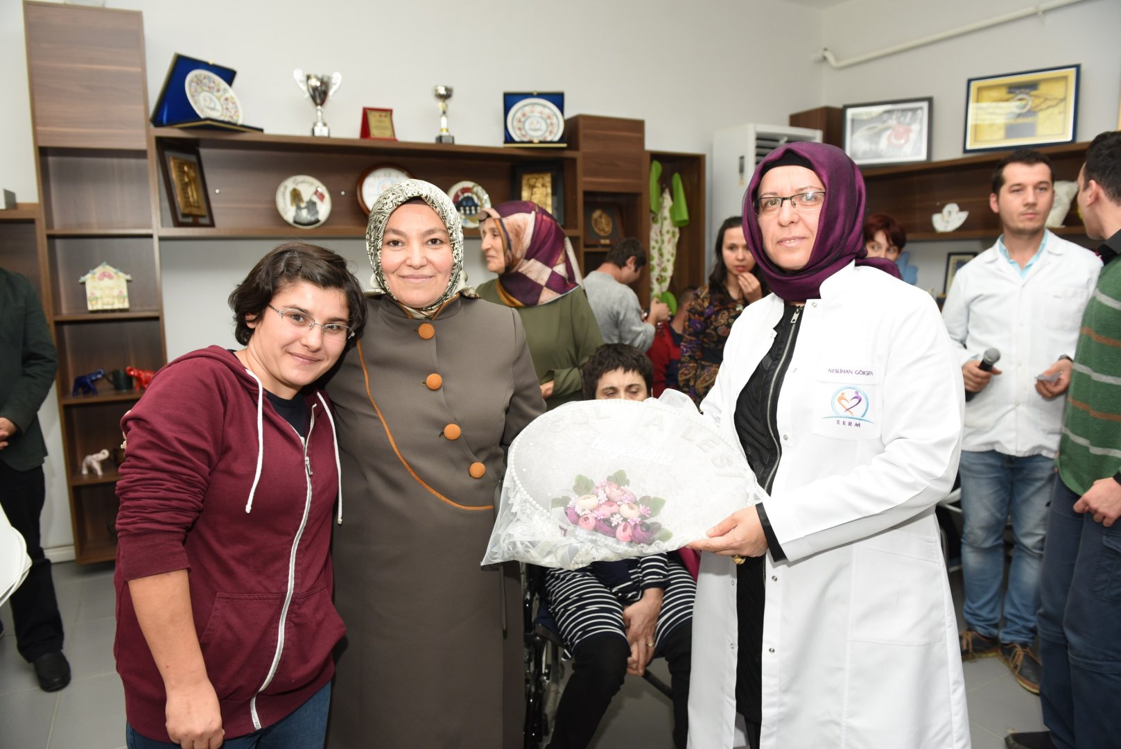 Öte yandan Halime Gül’e Engelli Eğitim ve Rehabilitasyon Merkezi El Sanatları öğrencileri tarafından hazırlanan bir hediye verildi.