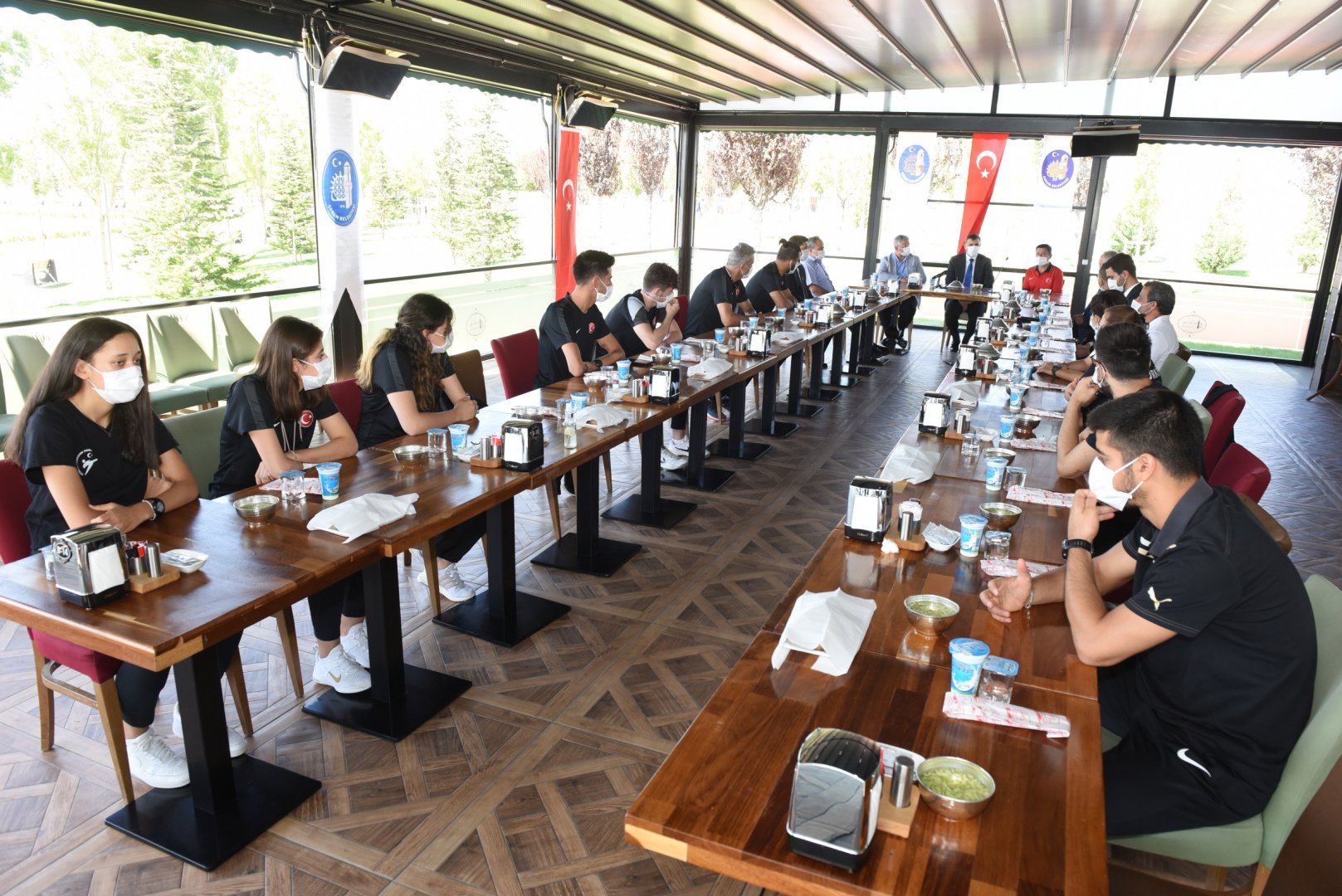 Milli Takım kampı için Çorum’u seçmelerinden duyduğu memnuniyet ve mutluluğu dile getiren Başkan Aşgın, sporcularla yaptığı sohbet sırasında dünyanın çeşitli yerlerinde yakaladıkları başarılardan dolayı duyduğu gururu dile getirdi. Başkan Aşgın, ‘Her biriniz artık fahri hemşehrimizsiniz’ diyerek, “Birkaç gün önce şehrimizde olduğunuzu duyunca çok mutlu oldum. Takip ediyoruz müsabakaları ve başarılarınızla gurur duyuyoruz. Dünyanın dört bir yanında ay yıldızlı bayrağımızı göndere çektirmeniz bizi daha da gururlandırıyor. Bundan sonraki müsabakalarınızda başarılarınızı devam ettireceğinizden de şüphemiz yok.  Tokyo Paralimpik Oyunları’nda da takımımızın her zaman olduğu gibi arkasındayız. Milli Takım kampı için şehrimizi seçmeniz ayrı bir gurur oldu, bizim için artık her biriniz fahri hemşehrimiz oldunuz. Türk Bayrağını her göndere yükselttiğinizde bir hemşehrimizin şampiyonluğunu kutlamış olacağız. Hepinize katılacağınız oyunlarda başarılar diliyorum” şeklinde konuştu.