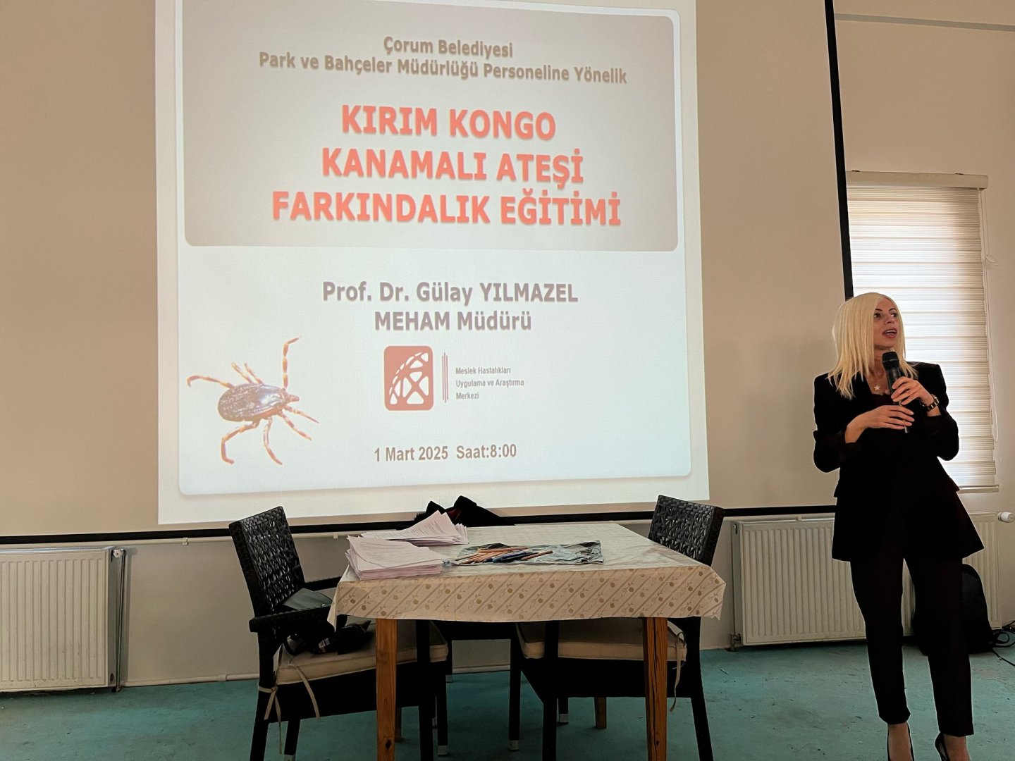 Çorum Belediyesi Park ve Bahçeler Müdürlüğü personeline Kırım Kongo Kanamalı Ateşi (KKKA) Farkındalık Eğitimi verildi.