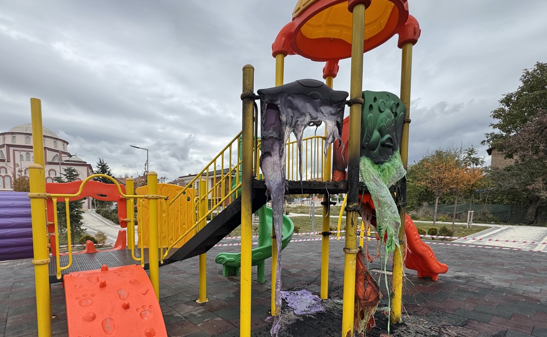 Kunduzhan Mahallesi’ndeki bir oyun parkı çocuklar tarafından yakıldı.  Yangında oyun grubu kullanılamaz hale geldi.