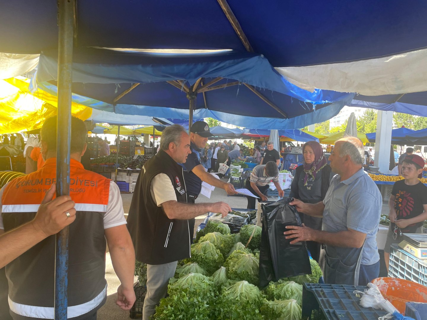 Çorum Belediyesi, semt pazarlarında oluşan kirliliği önlemek için pazar esnafını temizlik konusunda uyardı. Esnafa, sebze ve meyve atıkları için çöp poşetleri dağıtıldı.