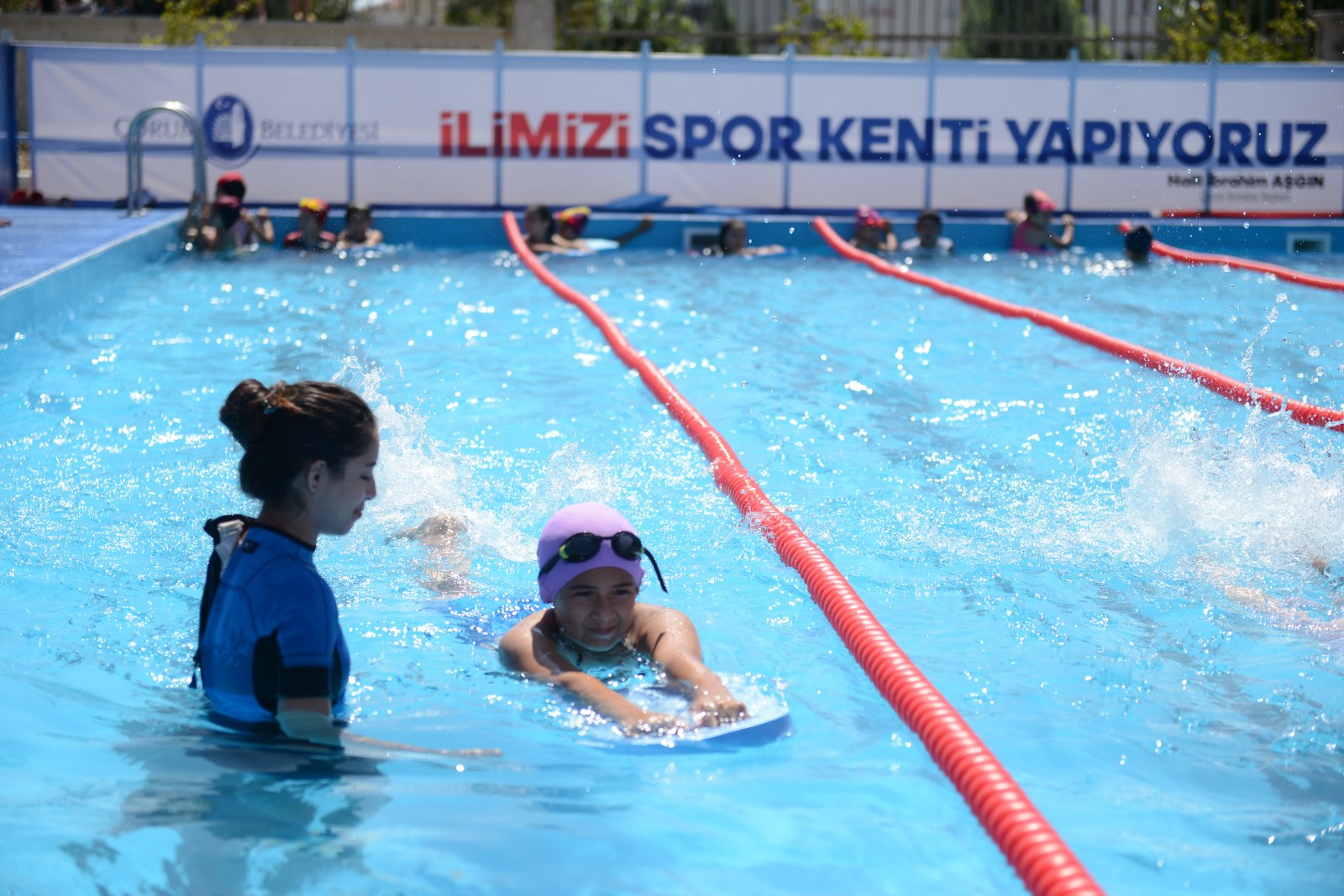 kuruldu. Şehrin dört yerinde kurulan portatif yüzme havuzlarında çocuklara