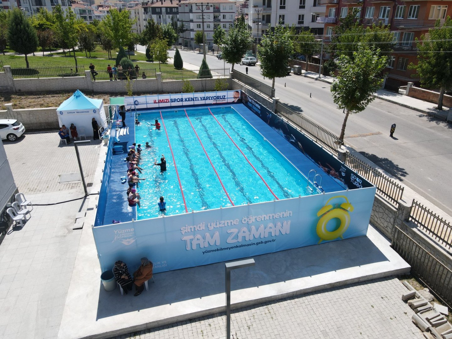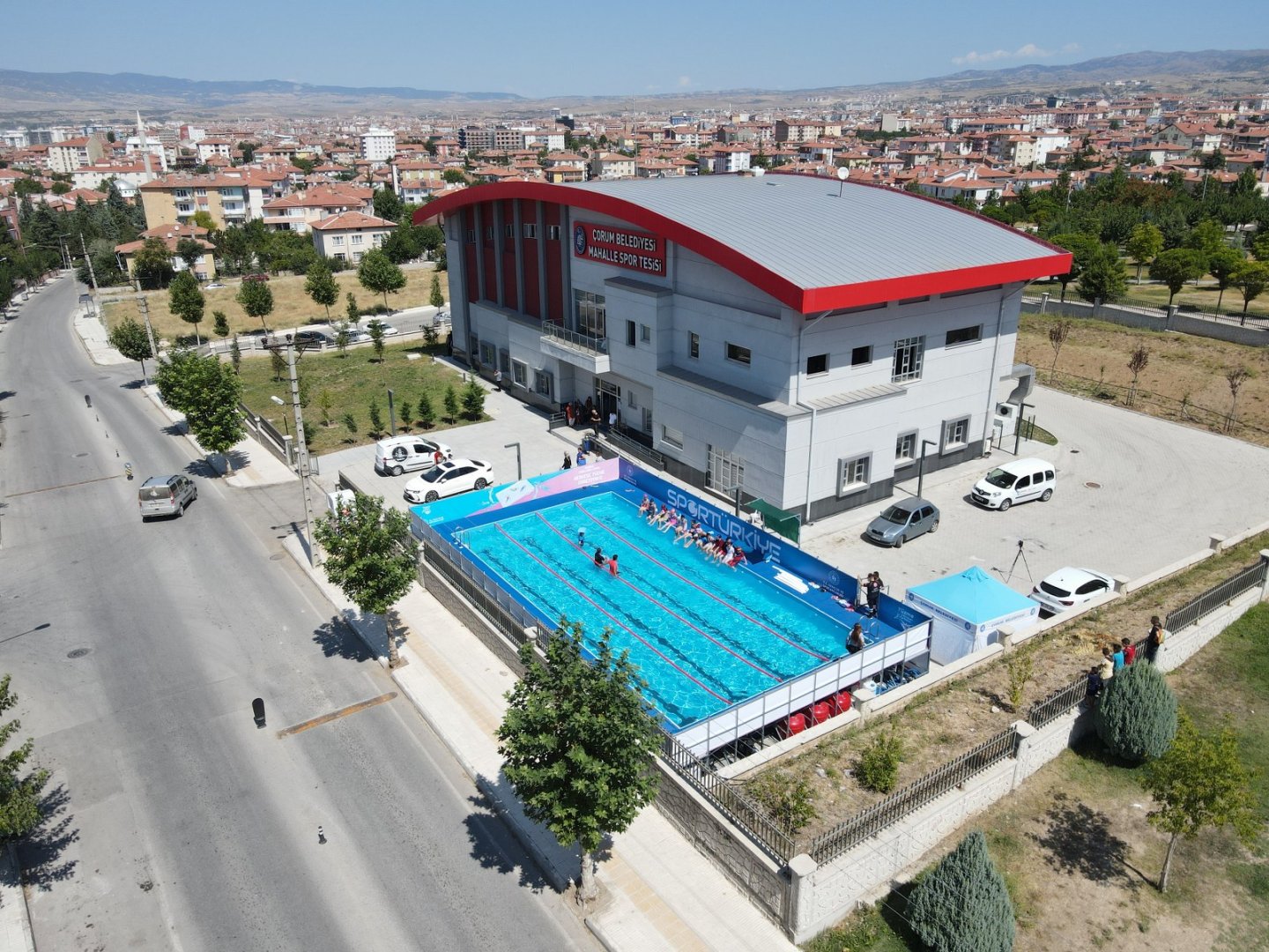 Çorum Belediyesi Kale Mahallesi Spor Tesisi bahçesinde portatif yüzme havuzu