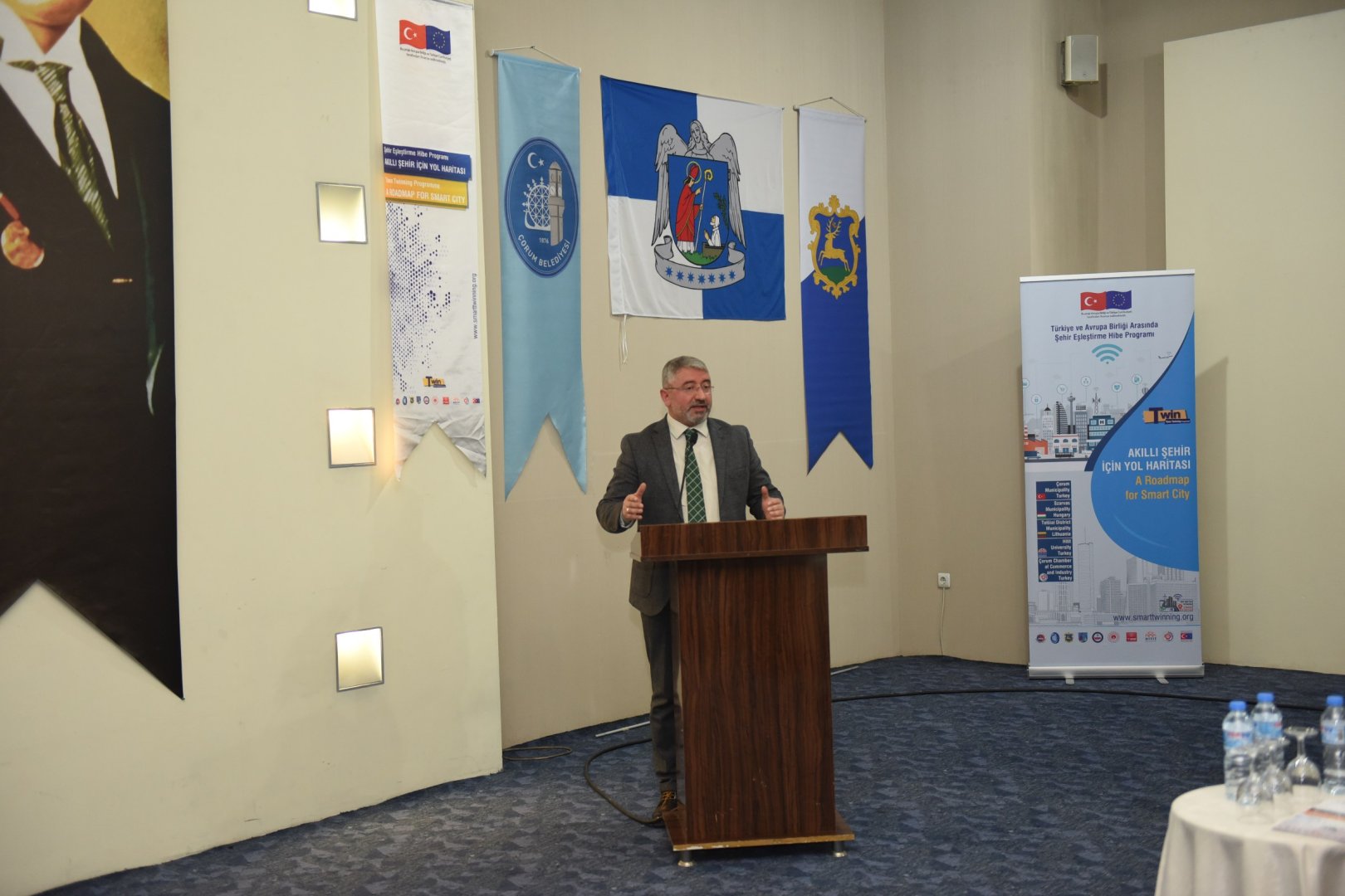 Toplantının açılışında konuşan Belediye Başkanı Dr. Halil İbrahim Aşgın, “Akıllı Şehirler Projesi”nin kapanış programında dünyanın birçok ülkesinden özellikle de Avrupa Birliği ülkelerinin belediye başkanlarıyla bir araya gelmekten duydukları memnuniyeti ifade etti. Yaklaşık bir yıldan beri devam eden proje kapsamında Avrupa’daki örnek uygulamaların proje ekibi tarafından yakından incelendiğini dile getiren Aşgın, Hollanda’da yapılan inceleme gezisine kendisinin de katıldığını ifade etti.