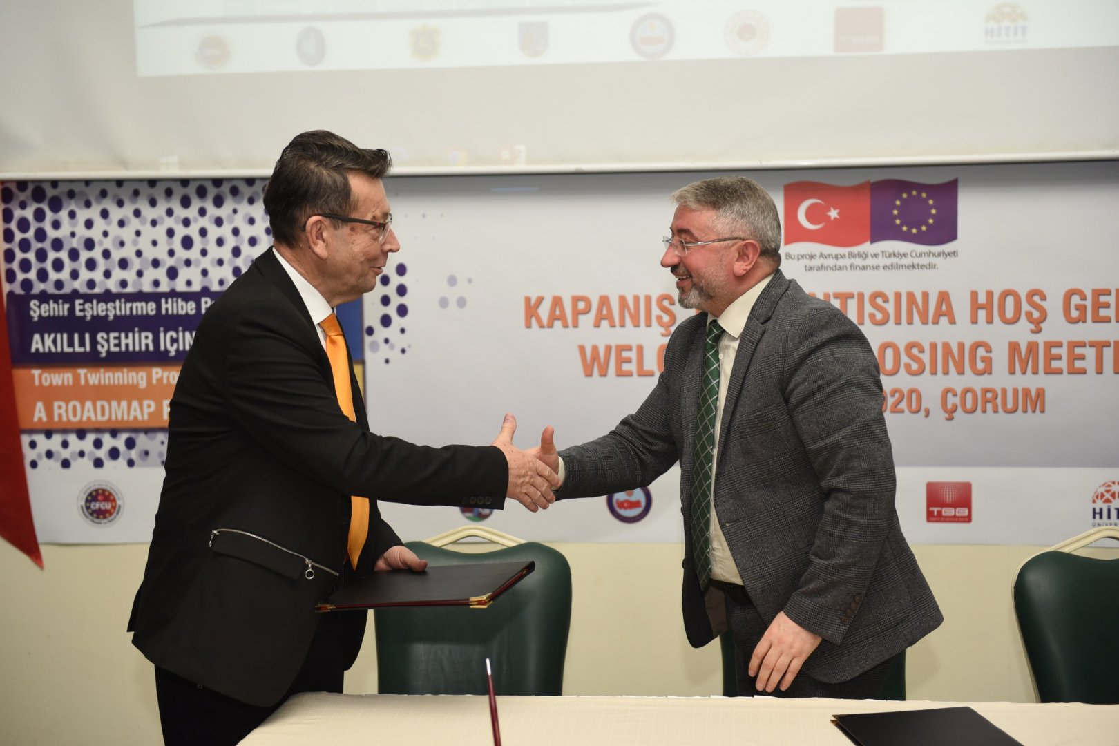 Projeyi ilk baştan beri çok önemsediklerini dile getiren Başkan Aşgın, kardeş şehir ya da şehirler arası iş birliğinin bundan sonra da devam edeceğini ifade ederek “Aslında bugün gerçekleştirdiğimiz bu program bir kapanış değil tam aksine bir başlangıçtır. Avrupa Birliğine üye ülkelerin belediyeleriyle hedefleri olan, rekabetçi olan, temiz olan bu şehir o birlikteliğe neler katabilir, neler alabilir, bu sürecin başlangıcı olarak düşünüyoruz. Bu anlamda biz Çorum Belediyesi olarak, projede birlikte yer aldığımız şehirlerimizle kardeş olmak istiyoruz. Bugün de burada iyi niyet ve işbirliği belgelerini imzalıyoruz. Kardeş şehir olamasak da işbirliği yapmak istiyoruz. İşbirliğine hazırız.” dedi.