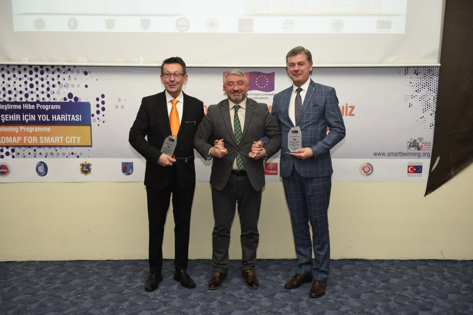 Akıllı Şehirler Proje ve Fikir Yarışmasında dereceye girenlere ödüllerin verilmesiyle devam eden program toplu fotoğrafın çekilmesiyle sona erdi.