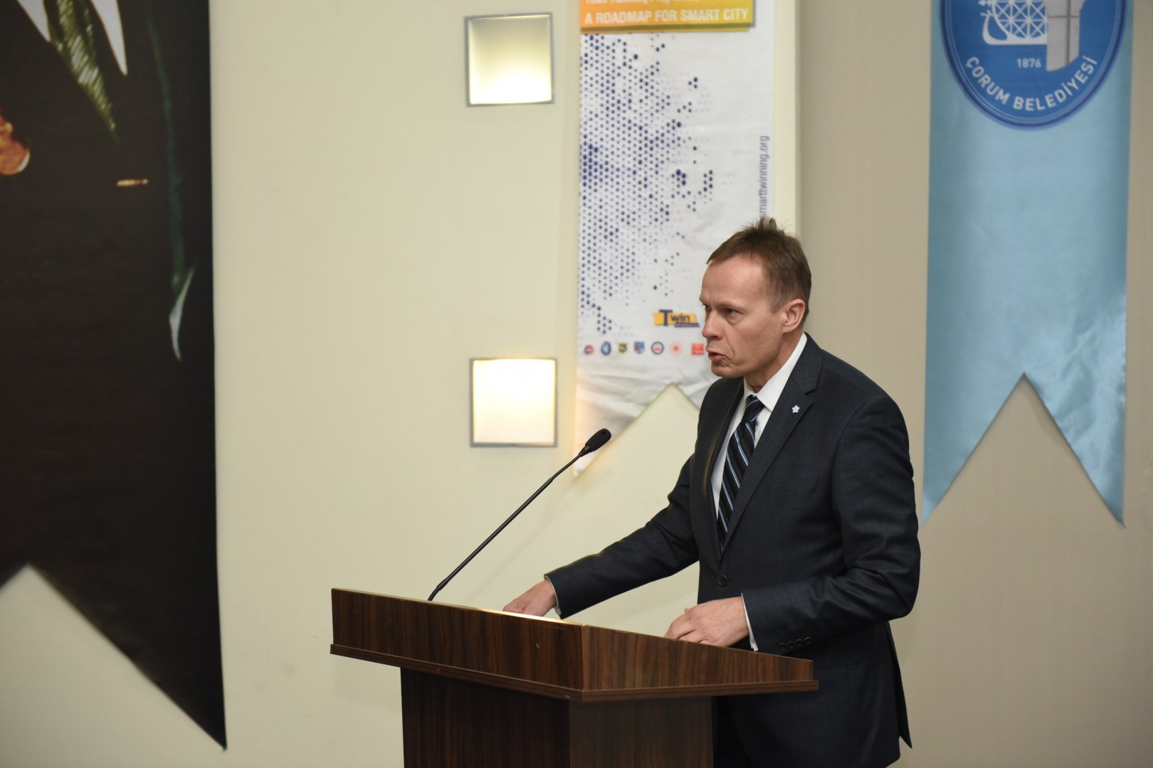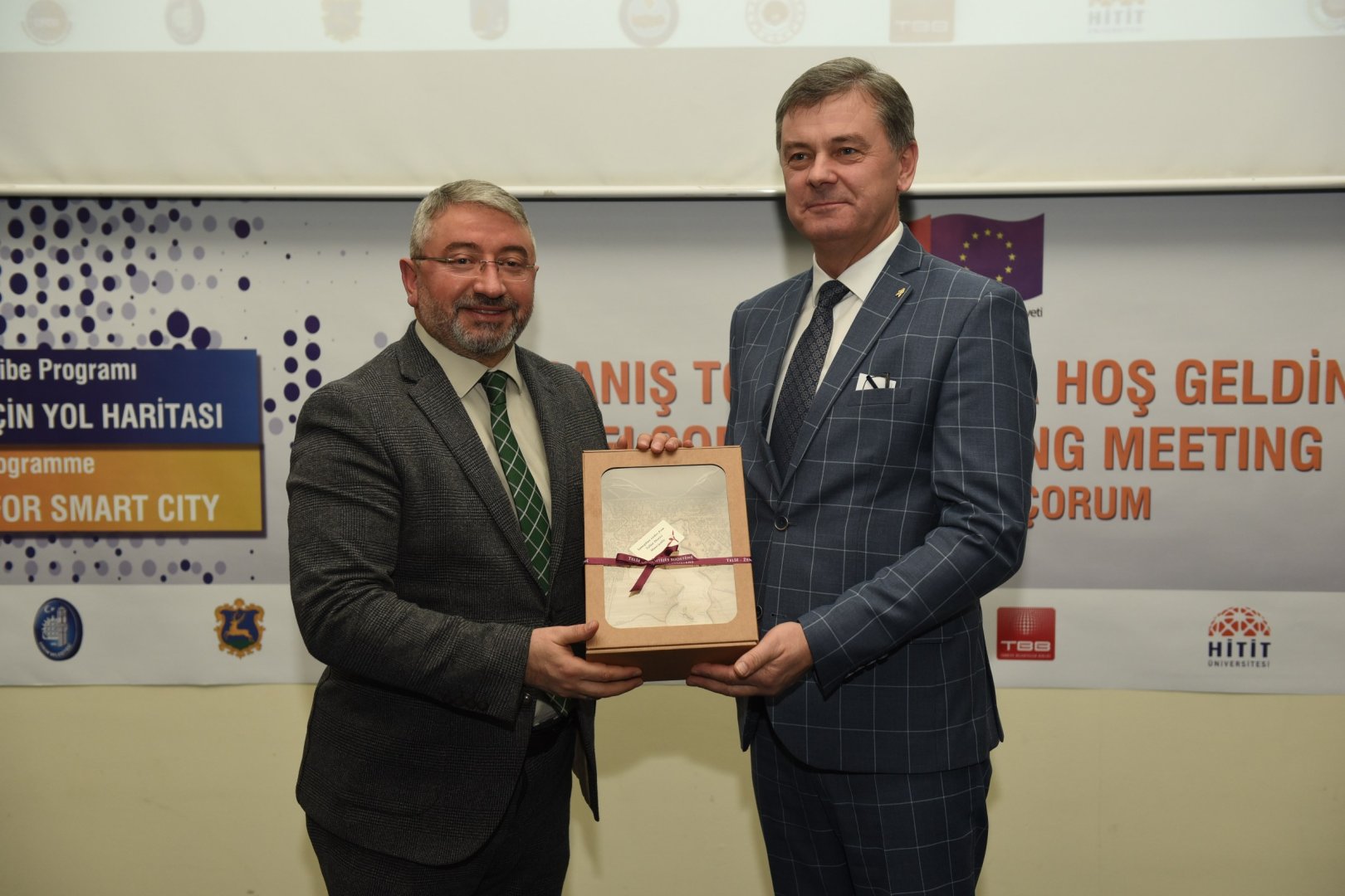 Avrupa Birliği Şehri Eşleştirme Hibe Programı- Akıllı Şehir İçin Yol Haritası Projesi, Anitta Otel’de düzenlenen kapanış programıyla sona erdi. Toplantıya Belediye Başkanı Dr. Halil İbrahim Aşgın’la birlikte Çorum Vali Yardımcısı Recep Yüksel, Litvanya Büyükelçisi Audrius Brüzga, Macaristan Büyükelçiliği Ataşesi Istvan Berce, Hitit Üniversitesi Rektörü Prof. Dr. Ali Osman Öztürk, Avrupa Konseyi Yerel ve Bölgesel Yönetimler Kongresi Heyet Başkanı Cemal Baş, Çorum Ticaret ve Sanayi Odası Başkan Vekili, Çevre ve Şehircilik Bakanlığı Genel Müdür Yardımcısı Hüseyin Bayraktar, Litvanya’nın Telsiai Belediye Başkanı Kestutis Gusarovas, Macaristan’ın Szarvas Belediye Başkanı Mihaly Babak ile birlikte çok sayıda davetli katıldı.
