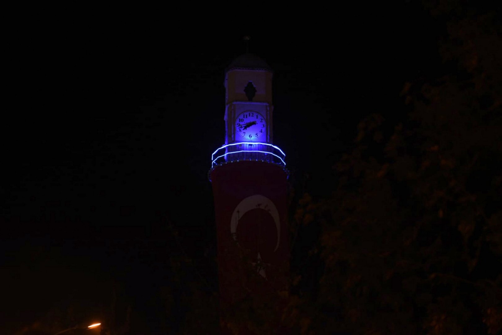 Saat Kulesi mavi renk ile ışıklandırıldı