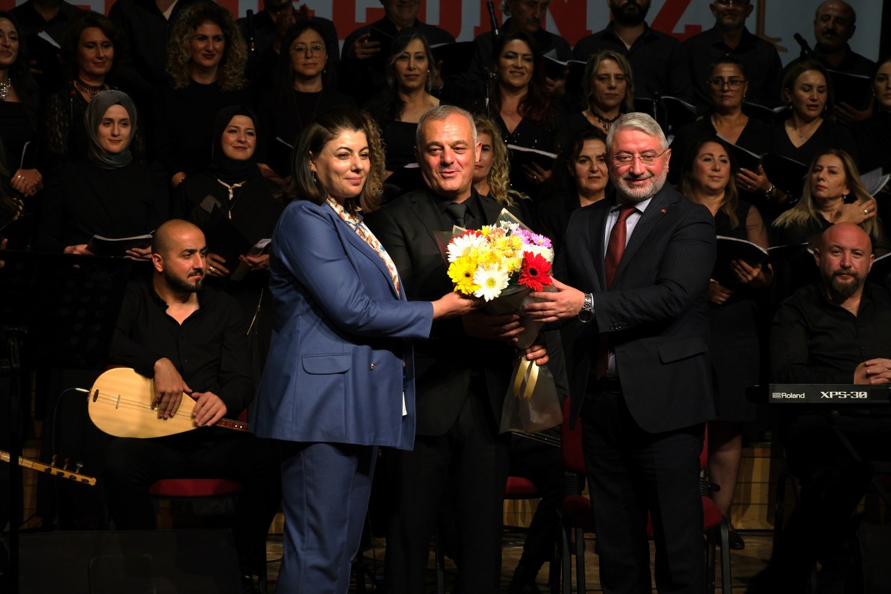 Vali Yardımcısı Yeliz Mercan ve Belediye Başkanı Dr. Halil İbrahim Aşgın konser sonrasında Koro şefi Sadeçolak ve koro üyelerine çiçek takdim etti.