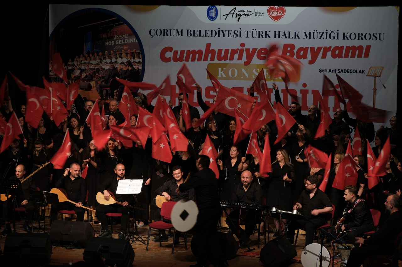 Çorum Belediyesi Türk Halk Müziği Korosu, Cumhuriyet’in 102. Yılı etkinlikleri kapsamında düzenlenen Cumhuriyet Konseri’nde sahne aldı.