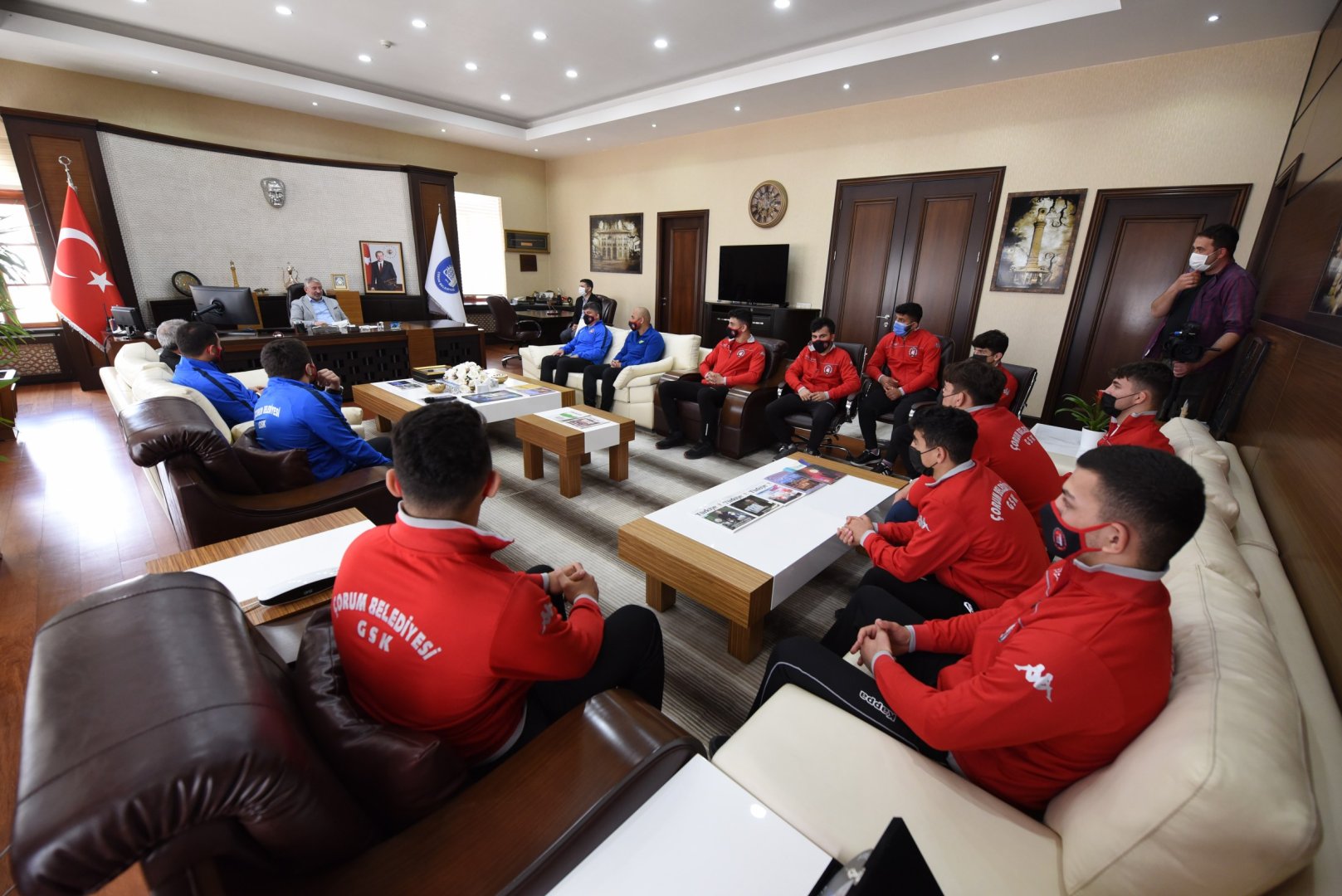 Antalya Göynük ve Kemer’de 30 Mart- 18 Nisan tarihlerinde yapılan Türkiye Güreş Şampiyonasında Türkiye üçüncüsü olan Çorum Belediyesi Gençlik ve Spor Kulübü (GSK) güreşçileri Belediye Başkanı Dr. Halil İbrahim Aşgın’ı ziyaret etti.