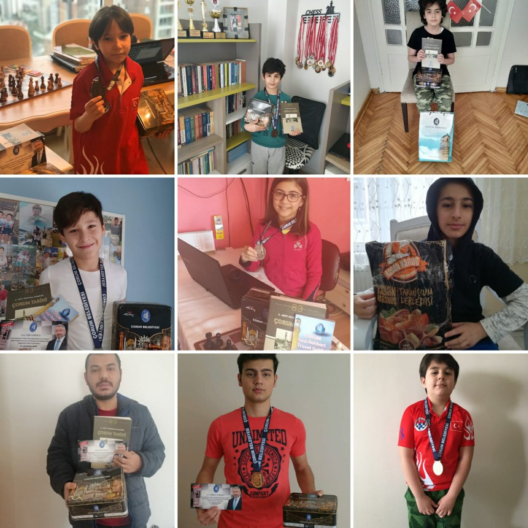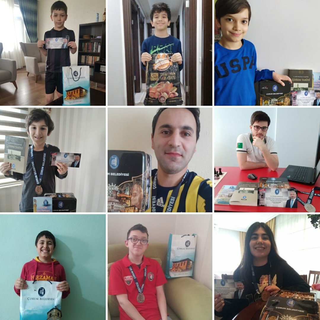 Online olarak yapılan Yıldırım Satranç Turnuvasında derece alarak ödüllerine kavuşan gençler Belediye Başkanımız Dr. Halil İbrahim Aşgın’a teşekkür etti. Madalya, leblebi, maske ve belediyenin bastırmış olduğu Çorum tanıtım kitaplarından oluşan hediyeler ellerine ulaşmasından dolayı teşekkür eden gençler duygularını hediyelerle birlikte fotoğraf çekinerek ifade etti.