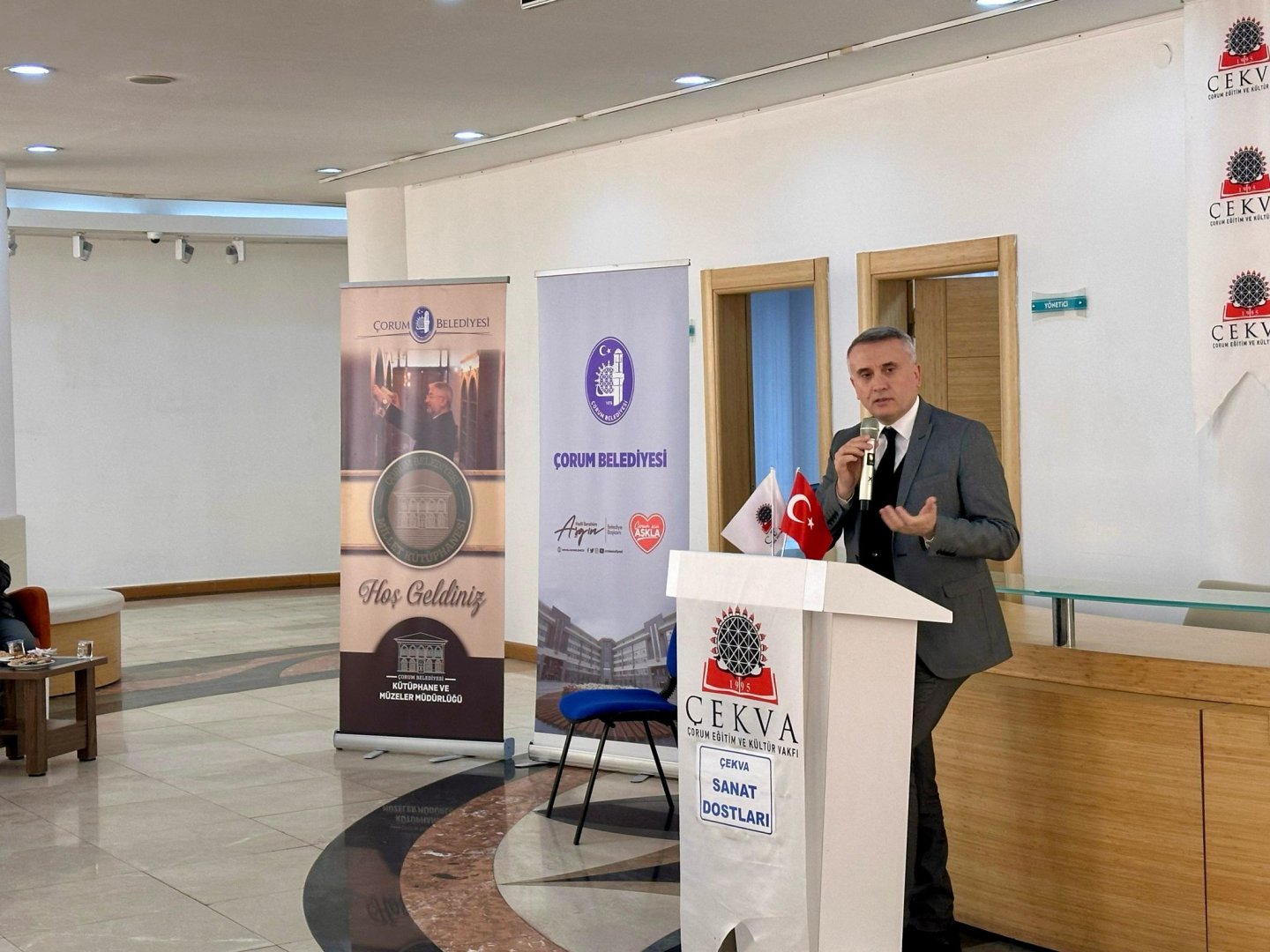 Çorum Belediyesi’nin Kütüphaneler Haftası etkinlikleri kapsamında Çorum Eğitim ve Kültür Vakfı (ÇEKVA) işbirliğiyle düzenlediği program Çorum Belediyesi Sanat Galerisi’nde gerçekleştirildi.