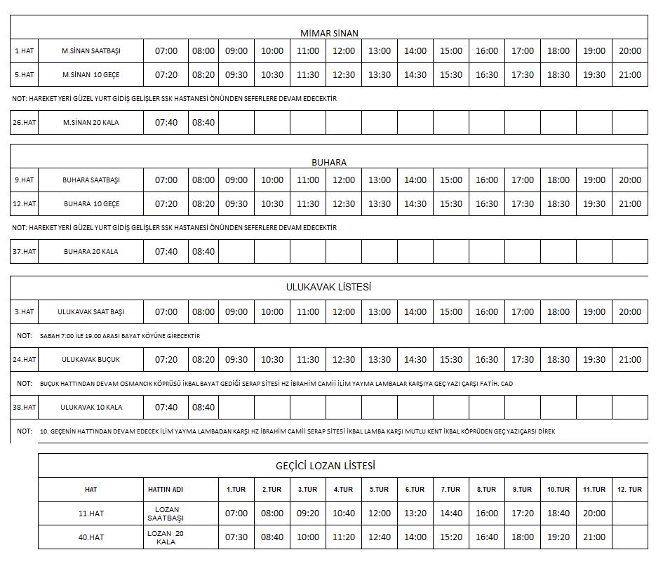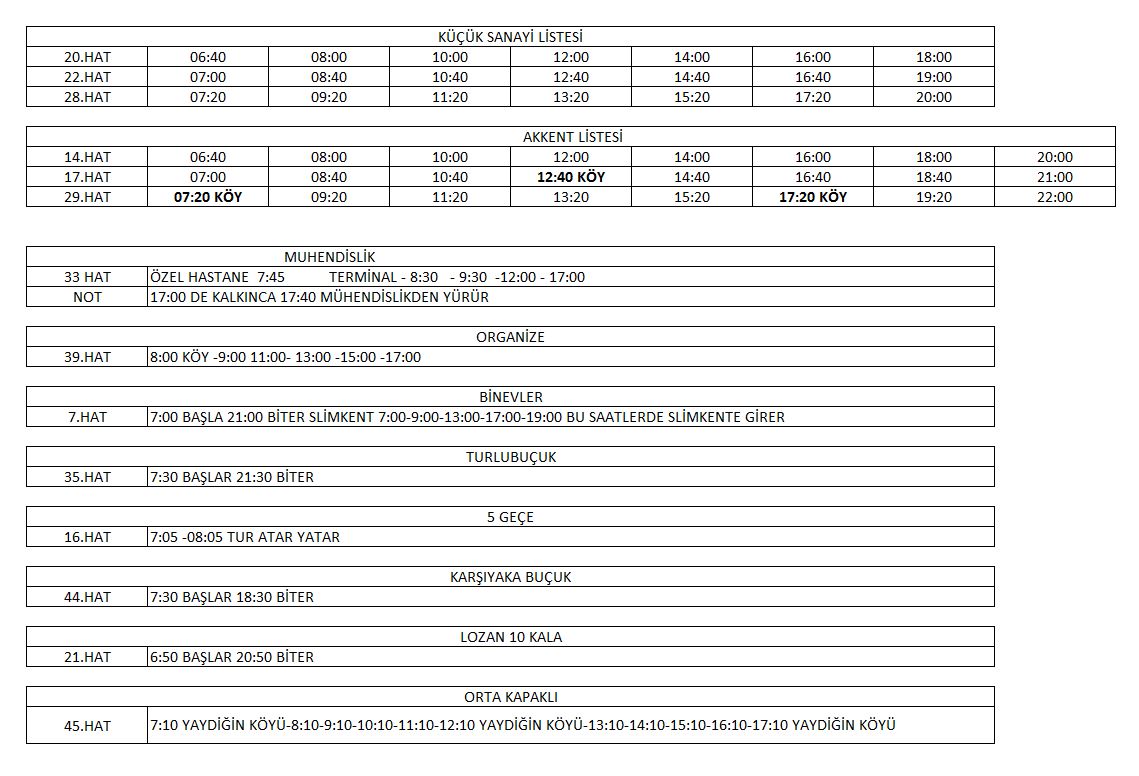Yeni belirlenen toplu taşıma saatleri ise şöyle;