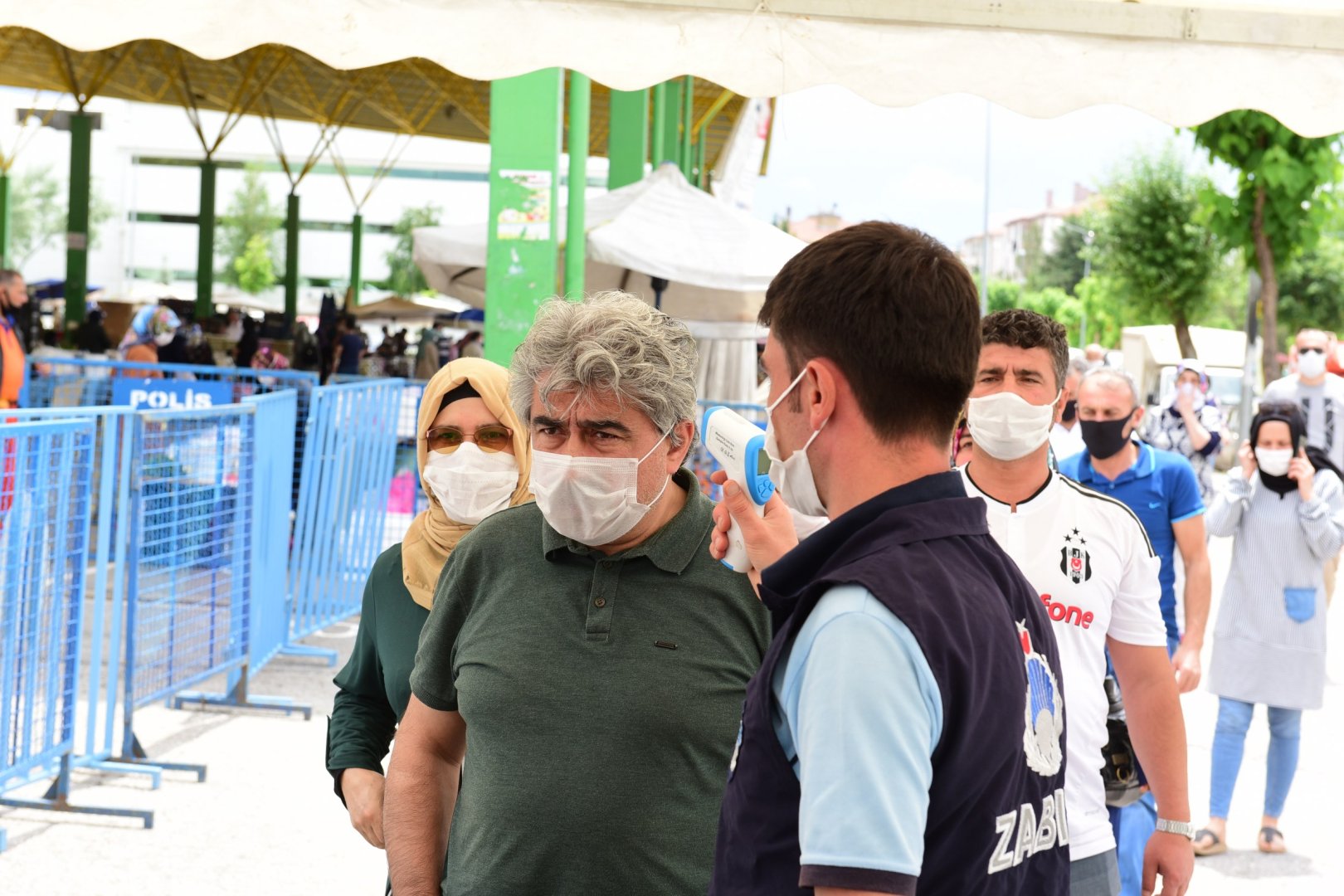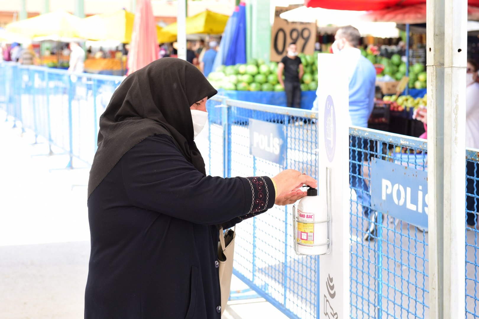 Belediyemiz, koronavirüs tedbirleri kapsamında denetim ve önleyici çalışmalarını büyük bir titizlikle gerçekleştiriyor. Pazartesi, Çarşamba ve Cumartesi günleri kurulan semt pazarlar girişlerinde görevliler Pazar alışverişi için gelenlerin ateşlerini ölçüp, maskesi olmayanlara maskelerini veriyor. Pazar girişlerine konulan dezenfektan üniteleri de alışveriş için gelen vatandaşlara hizmet veriyor.
