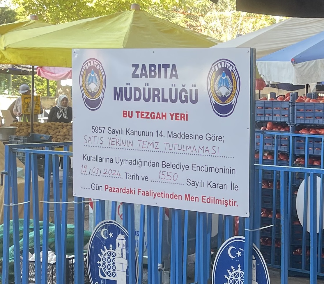 Sabah saatlerinde Cuma Pazarı’nda denetim yapan ekipler bir esnafın hijyen kurallarına uymadığını tespit etti. 2024 yılı içerisinde 2 kez daha aynı kuralı ihlalden dolayı idari para cezası uygulanan esnafa Belediye Encümen kararı gereği tezgah kapatma cezası verildi.