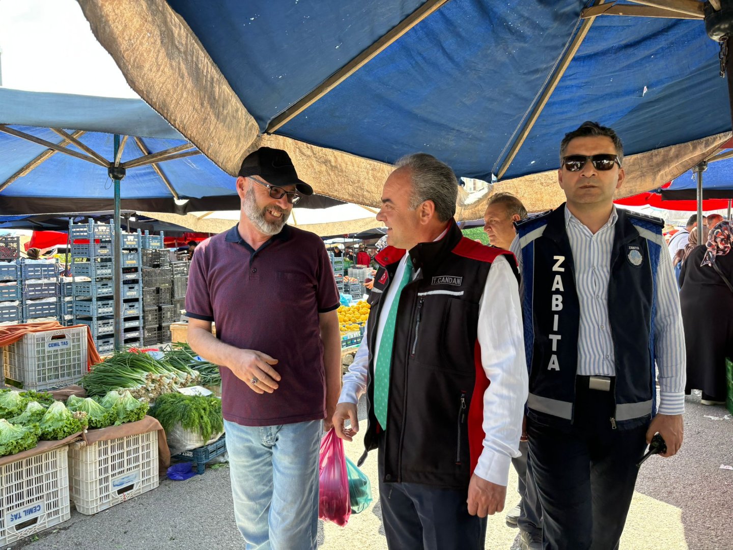 Pazartesi Pazarında yapılan denetimlere katılan Belediye Başkan Yardımcısı Turhan Candan, ürün kalitesi ve hijyen açısından vatandaş memnuniyetini artırmak amacıyla semt pazarında denetimlere devam ettiklerini belirtti. Candan “Semt pazarlarında sebze ve meyve kalite standardının artırılması, tezgâh önü ve arkasının aynı kalitede olması denetimleri yapılmaktadır. Bu denetimlerimiz aralıksız devam edecek.” diye konuştu.