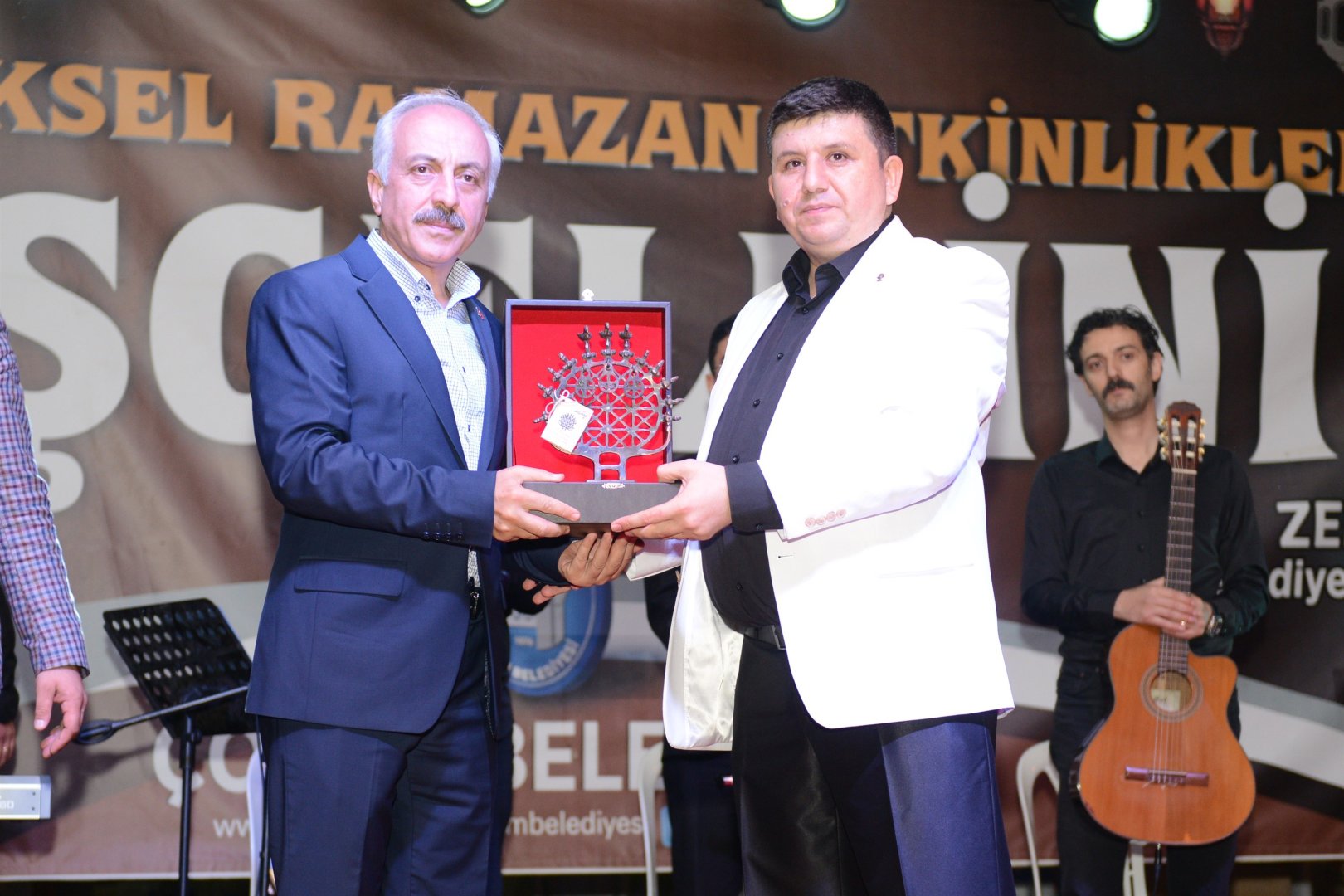 Konserin ardından Belediye Başkanı Zeki Gül, Çorumlu sanatçı Ubeydullah Sezikli’ye hediye verdi.