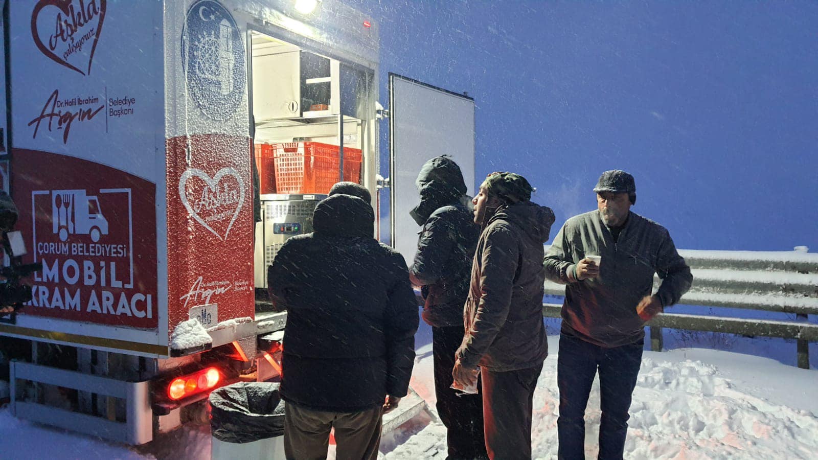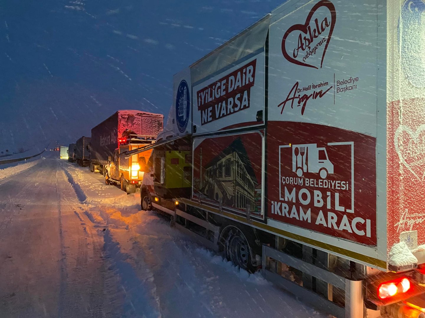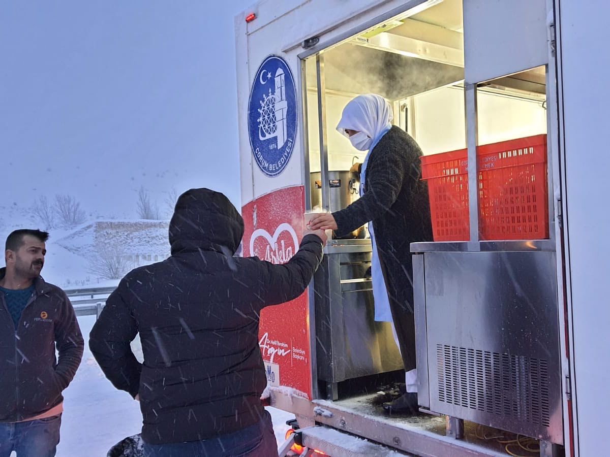 Özellikle Karadeniz’den Ankara istikametine giden tır ve otobüslerin yoğun yağış nedeniyle beklemek zorunda kaldığı Konaklı Köyü civarına giderek şoförlere ve yolculara bu soğuk kış gününde sıcak çorba ikram eden Çorum Belediyesi, bu hizmetiyle yolda kalan vatandaşlardan bol bol dua aldı. Sürücüler ve yolcular, kendilerine yönelik yapılan bu uygulama nedeniyle Başkan Aşgın ve belediye çalışanlarına teşekkür etti.