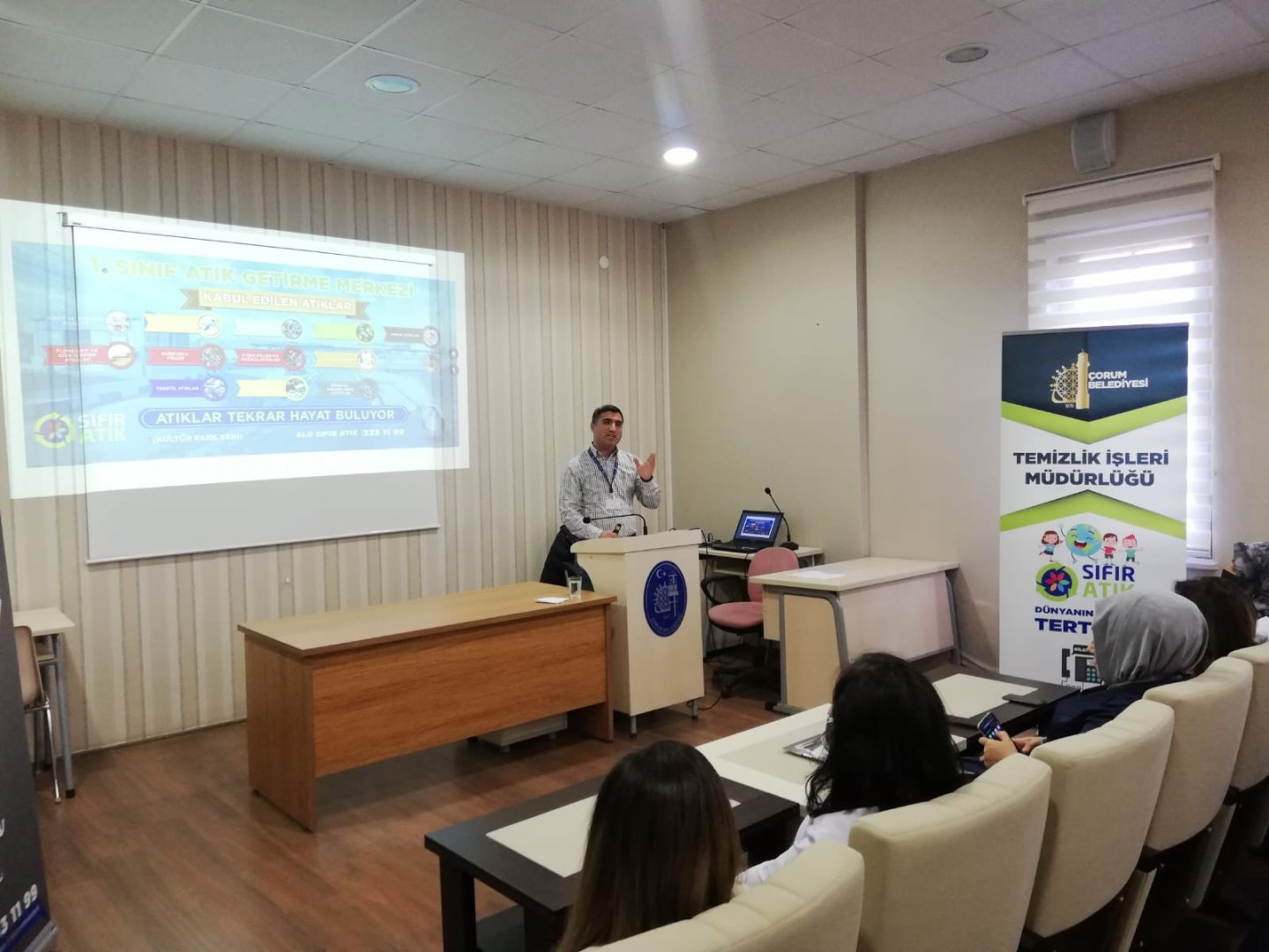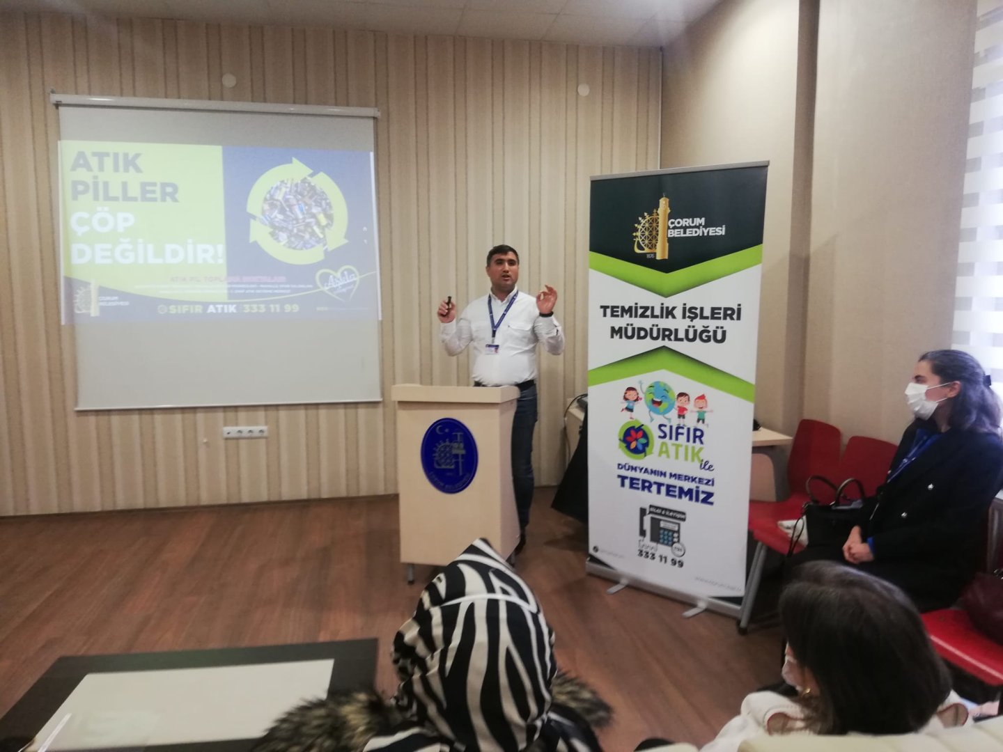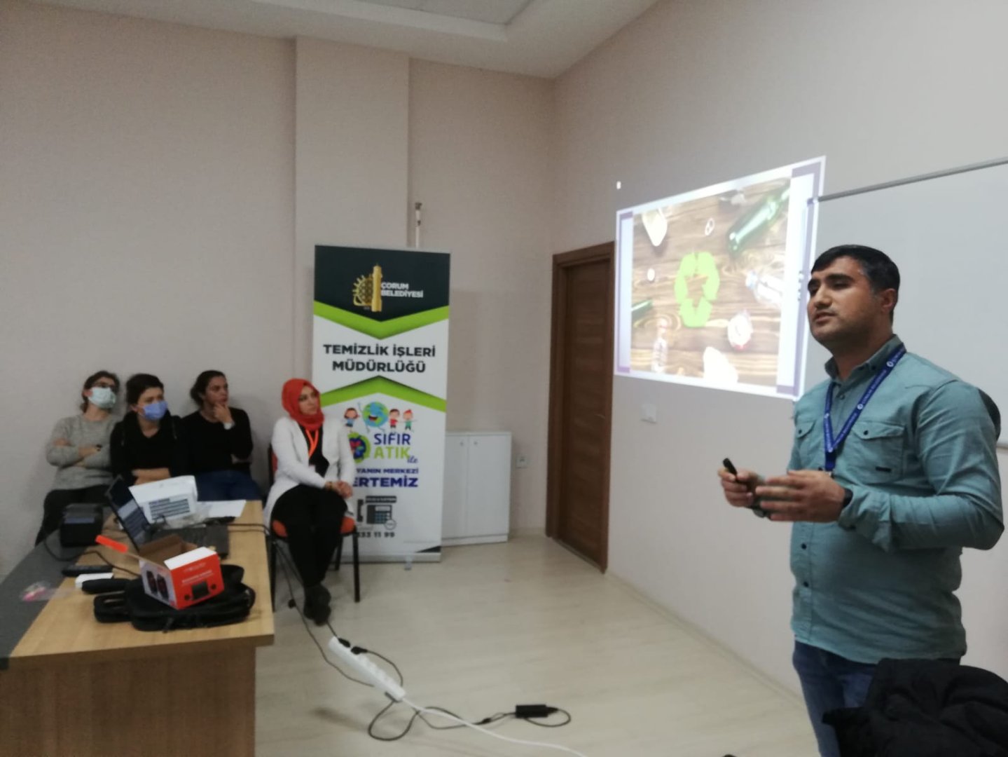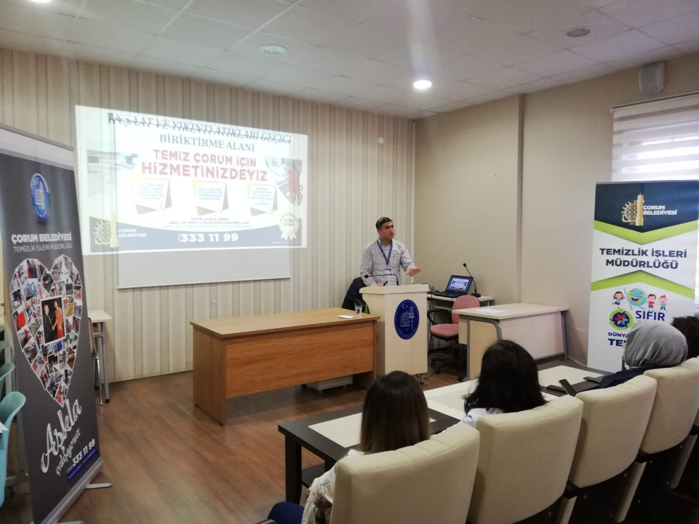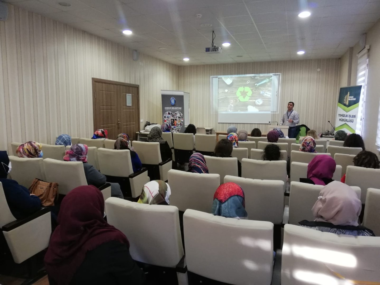 Kadın Kültür ve Sanat Merkezlerinde görevli eğitmenlere ve kursiyerlere verdikleri seminerle atık nedir, atık türleri, sıfır atık nedir, atık pil, bitkisel atık yağ, inşaat ve moloz atıkları, geri dönüşüm nedir, atıkların ayrıştırılması, geri dönüşümün faydaları, israfın önlenmesi, ekonomiye katkı sağlaması, kaynağında ayrıştırılması, atık miktarının azaltılması ve doğal kaynakların verimli bir şekilde kullanılmasının çevre için önemine değindiklerini ifade eden Yağbat, seminer sonunda katılımcılara poşet kullanımını azaltmak için bez çanta ve daha yeşil bir Çorum için tohumlu kalem hediye ettiklerini vurguladı.