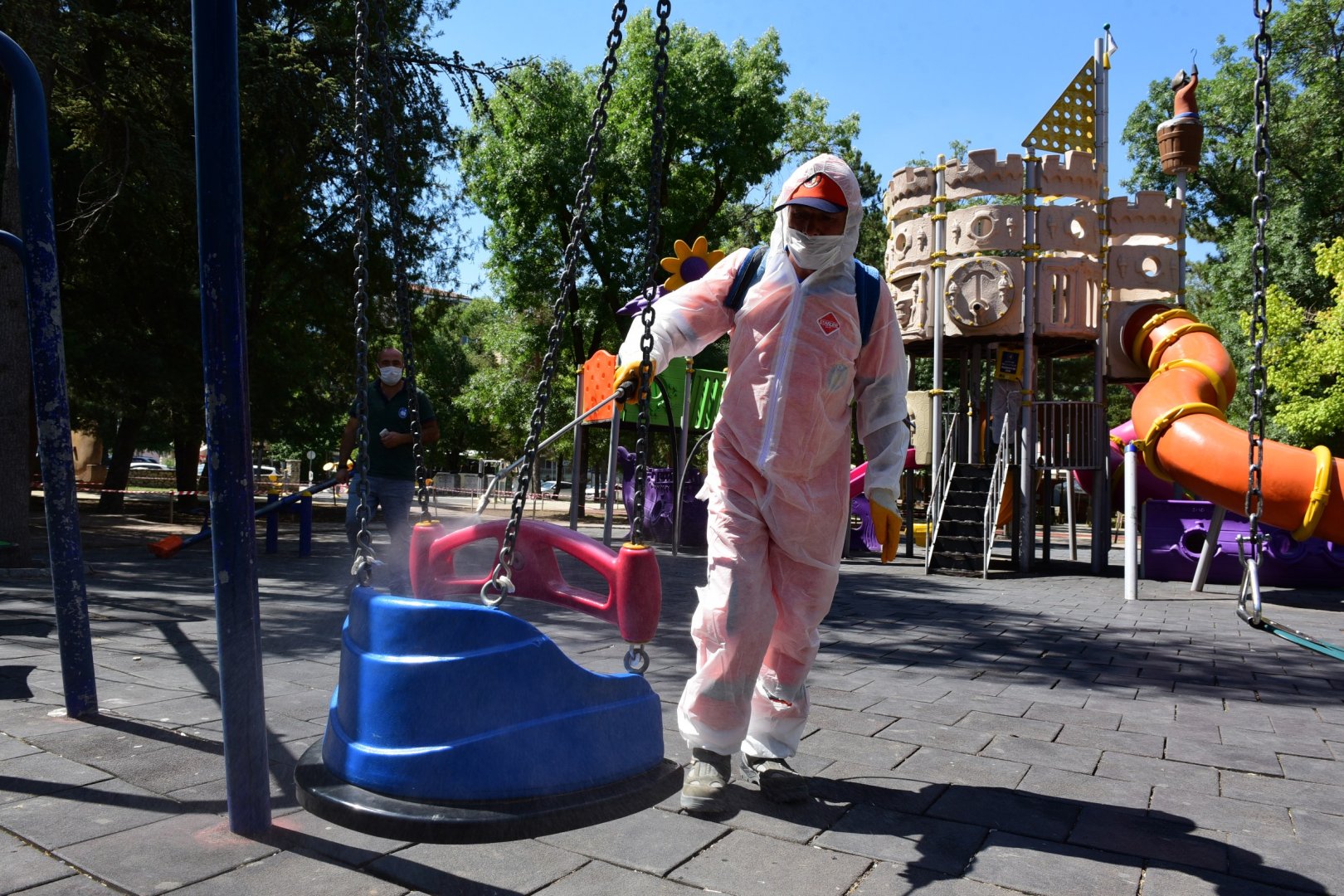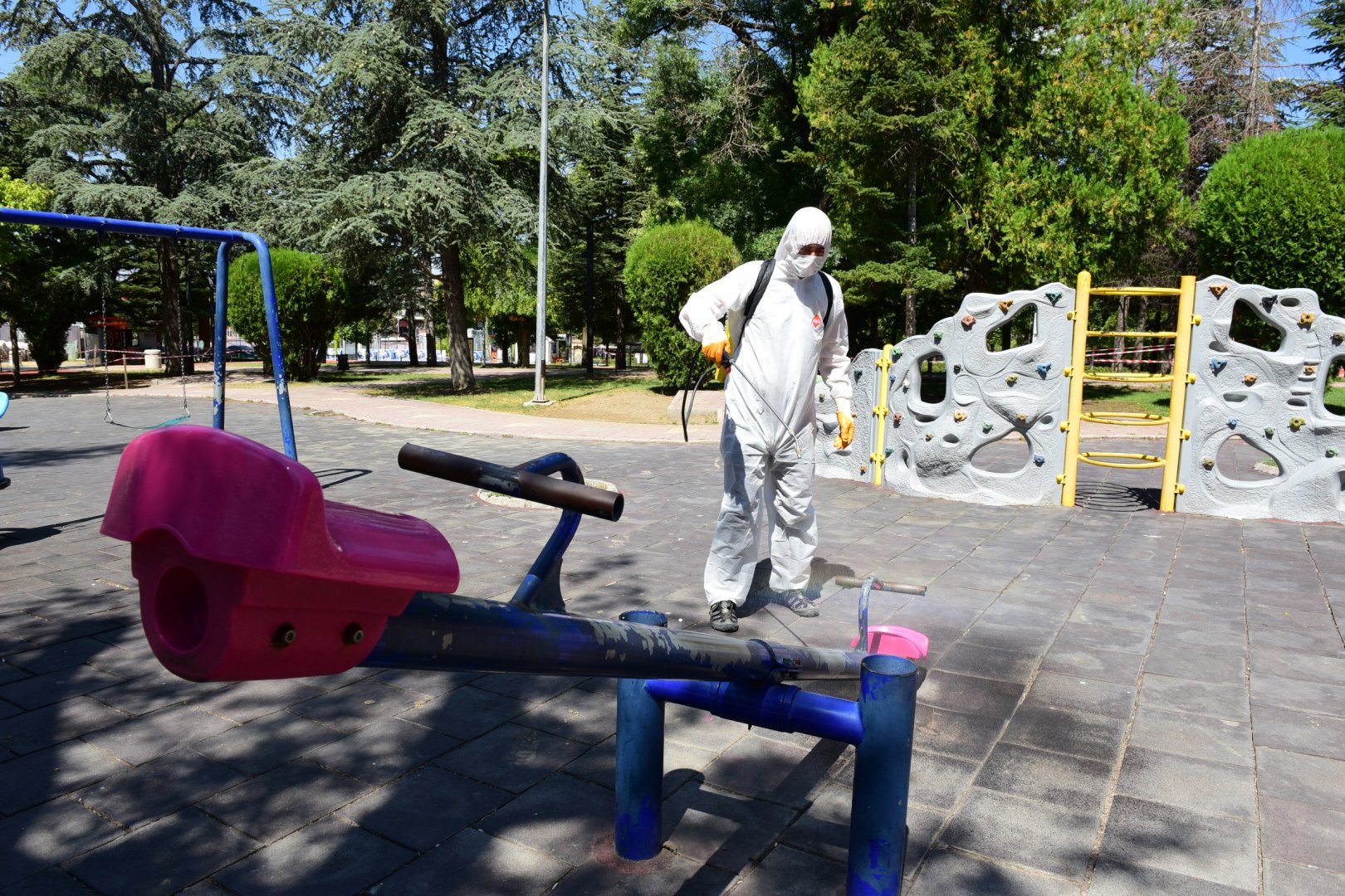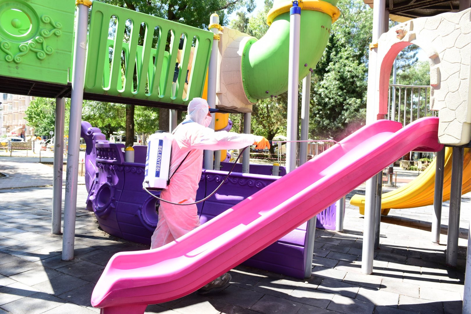 Park ve Bahçeler Müdürlüğü ekipleri tarafından, parklar, oyun alanları, ibadethaneler, banka ATM’leri, otobüs durakları ve halk otobüsleri başta olmak üzere halkın yoğun olarak bulunduğu tüm sosyal alanlarda dezenfekte çalışması yapılıyor. Bahabey Caddesi, Gazi Caddesi, İnönü Caddesi’ndeki kaldırımlar, dükkanlar ve vatandaşın yoğun olarak bulunduğu meydanlar 3 günlük periyotlarla dezenfekte ediliyor. Şehir merkezindeki 241 adet parkta bulunan kameriye, bank, çöp kovaları ve çocuk oyun grupları da koronavirüs tehdidine karşı sürekli dezenfekte ediliyor.