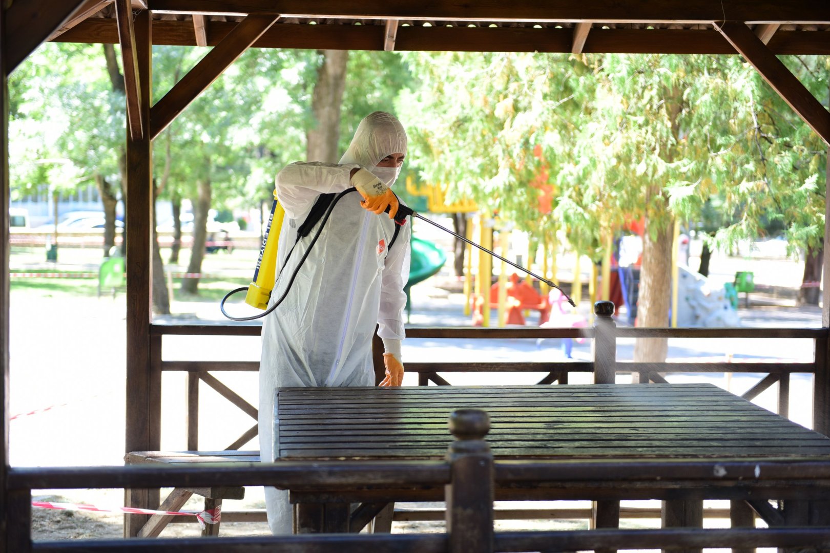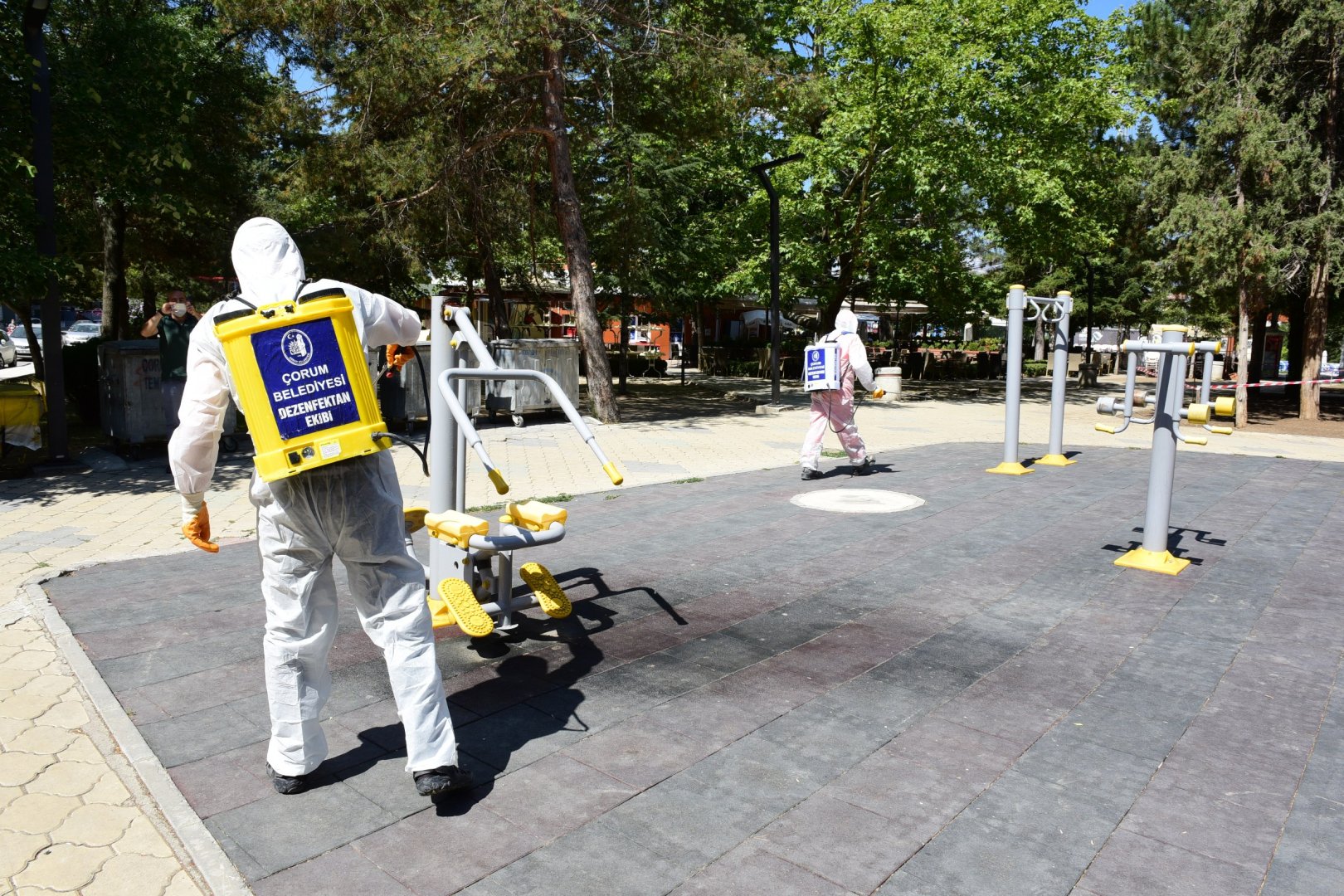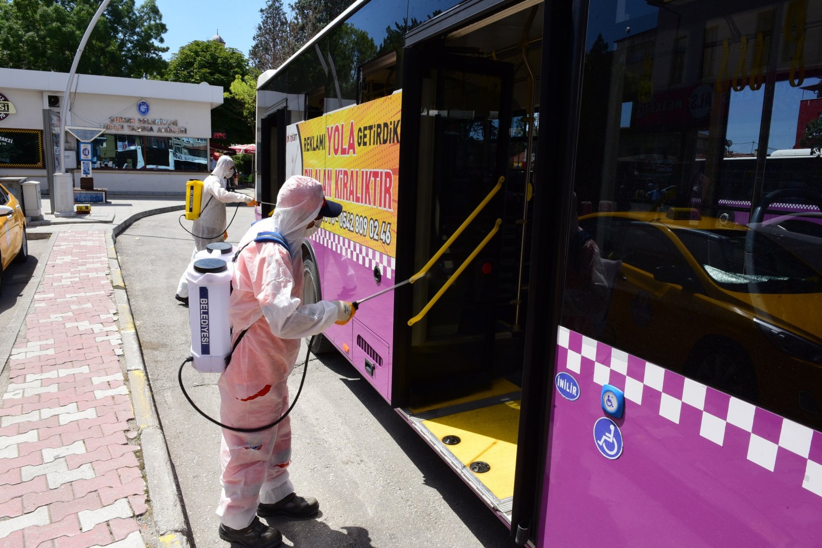 Park ve Bahçeler Müdürlüğü ekipleri tarafından, parklar, oyun alanları, ibadethaneler, banka ATM’leri, otobüs durakları ve halk otobüsleri başta olmak üzere halkın yoğun olarak bulunduğu tüm sosyal alanlarda dezenfekte çalışması yapılıyor. Bahabey Caddesi, Gazi Caddesi, İnönü Caddesi’ndeki kaldırımlar, dükkanlar ve vatandaşın yoğun olarak bulunduğu meydanlar 3 günlük periyotlarla dezenfekte ediliyor. Şehir merkezindeki 241 adet parkta bulunan kameriye, bank, çöp kovaları ve çocuk oyun grupları da koronavirüs tehdidine karşı sürekli dezenfekte ediliyor.