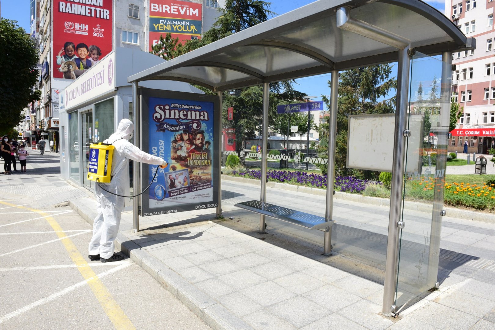 Belediyemiz Covid-19 ile mücadelesini sürdürüyor.  Pandemi sürecinde Çorum halkının sağlığını korumak için gece-gündüz çalışan belediyemiz, dezenfekte çalışmalarına aralıksız devam ediyor. Son günlerde Çorum’da koronavirüs vakalarının artması üzerine çalışmalarını yoğunlaştıran ekiplerimiz, ortak kullanım alanlarını sık sık dezenfekte ediyor.