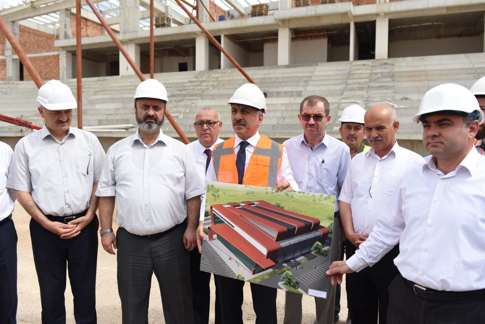 Belediye Başkan Zeki Gül, belediye başkan yardımcıları ve Gençlik Spor İl Müdürü Haşim Eğer ile birlikte İskilip yolunda eski Hayvan Pazarı’nda yapımı devam eden Spor Salonu inşaatında incelemelerde bulundu.