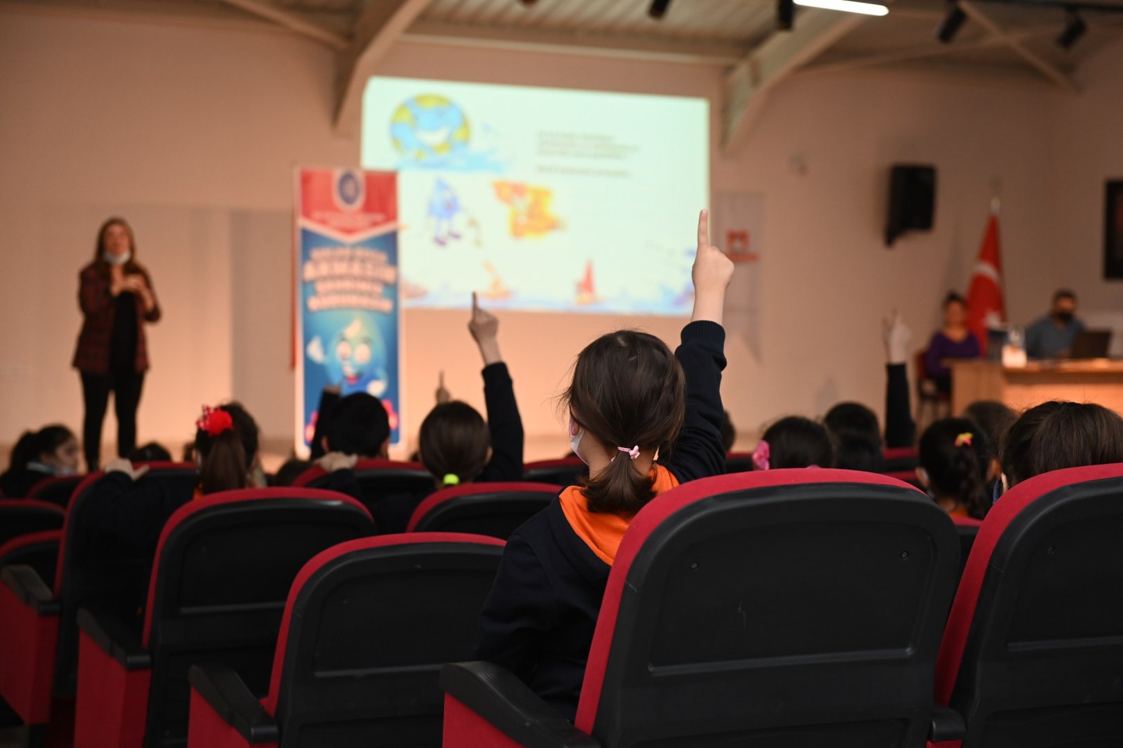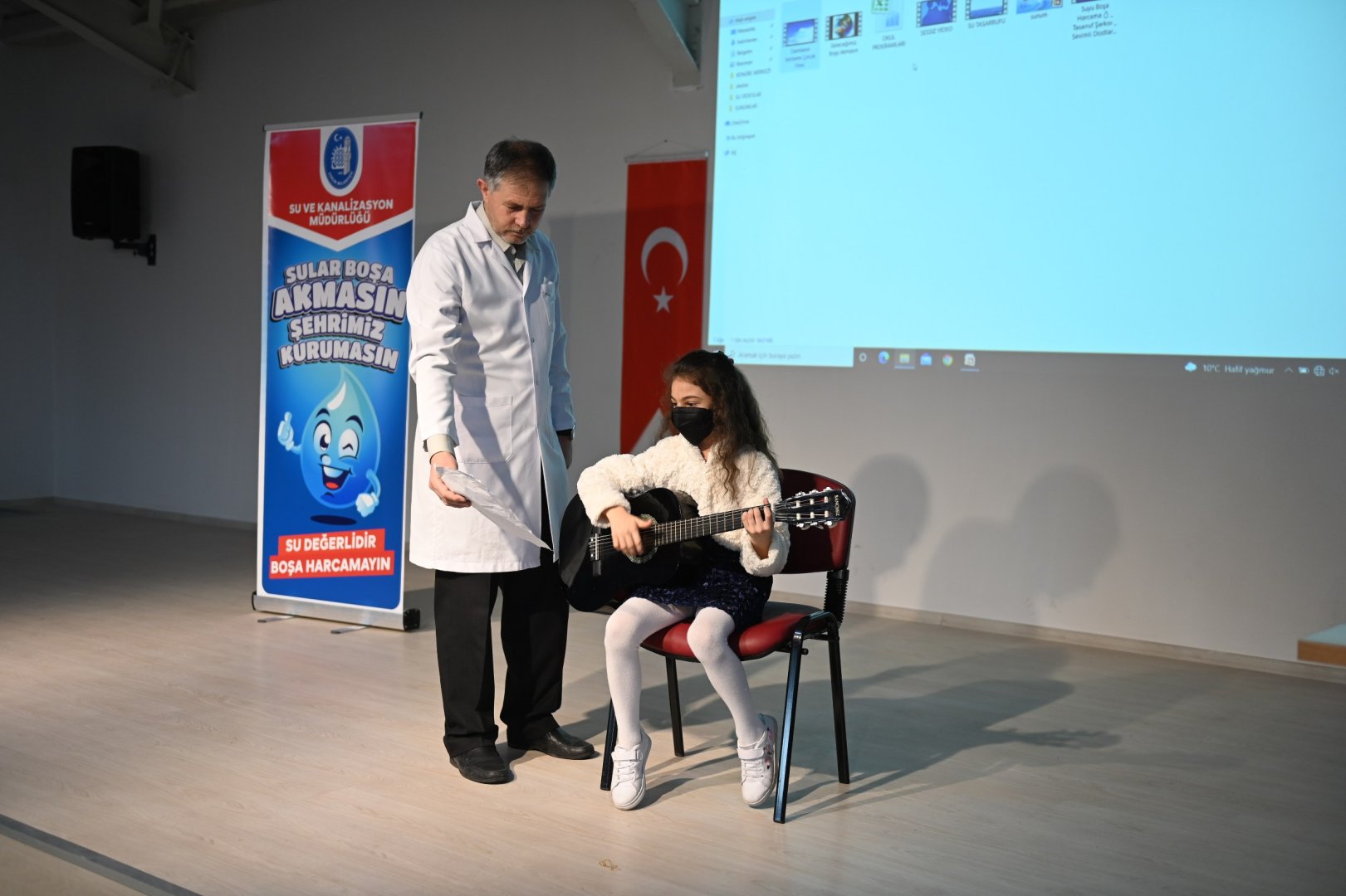 İlk ve ortaokullar düzeyinde belirlenen 4 okulda verilen içme suyu farkındalık semineri ile toplamda 676 öğrenciye ulaştıklarını ifade eden Belediye Başkan Yardımcımız Alper Zahir, “Proje kapsamında belirlediğimiz okullarda Su İşleri Müdürlüğümüz yetkilileri öğrencilere su tasarrufu ve suyu bilinçli kullanma konularında eğitimler veriyor. Eğitim alan öğrenciler birer su muhafızı rozeti alıyor ve bundan sonraki hayatlarında alieleri başta olmak üzere çevresindekilere su tasarrufu ile ilgili öğrendiklerini aktarıyorlar.  Bu sayede suyun bilinçli kullanılması farkındalığı yarının büyükleri olan çocuklara kazandırmış oluyoruz” dedi.