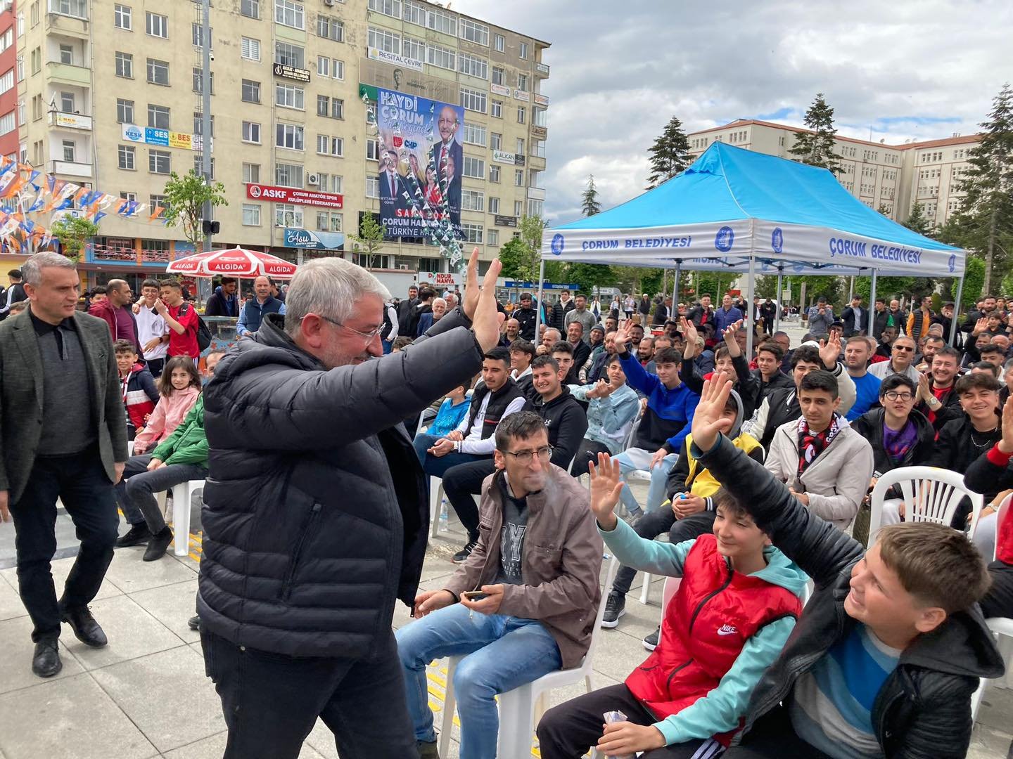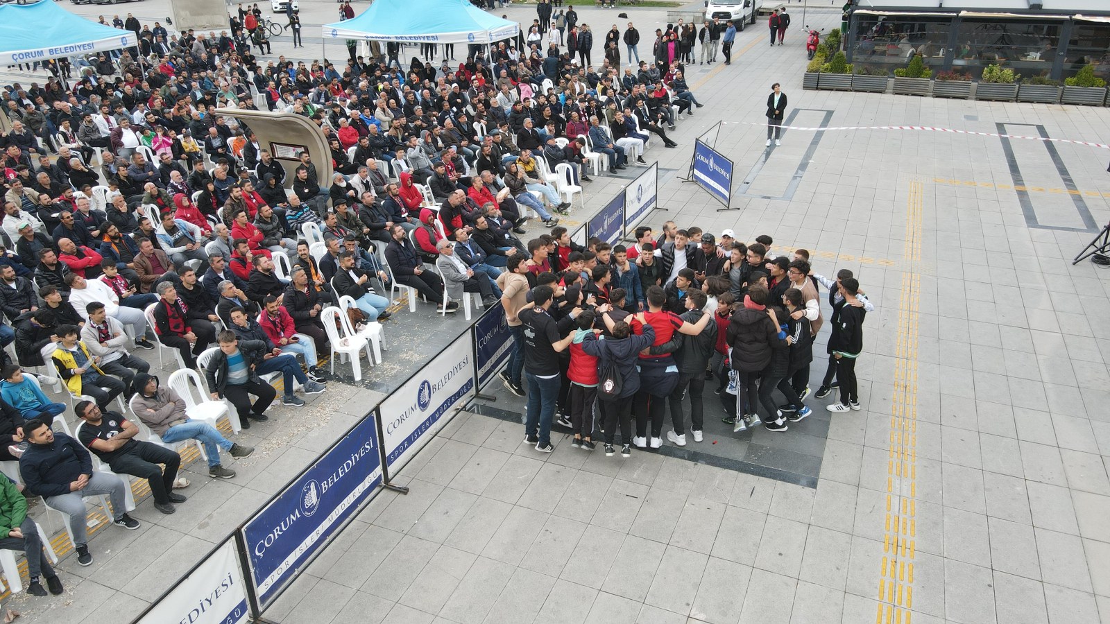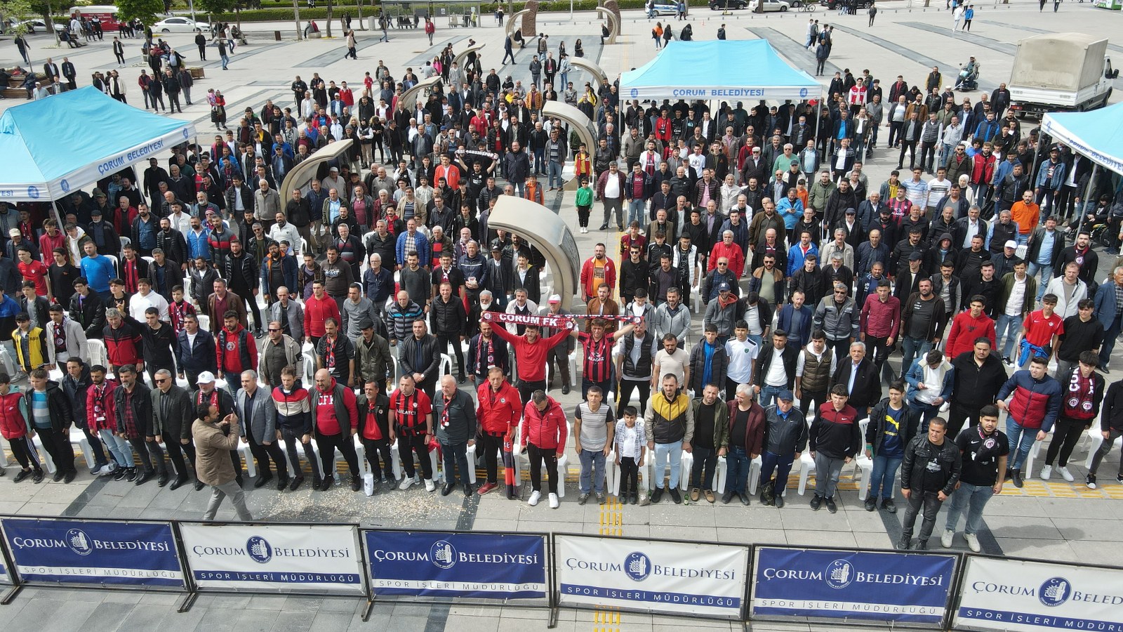 2.Lig Beyaz Grup’ta şampiyonluk mücadelesi veren Çorum FK, 36.hafta maçında konuk olduğu Menemen Belediyespor ile 1-1 berabere kalarak liderliğini sürdürdü. Her zaman sporun ve sporcunun yanında olan Çorum Belediyesi, Çorum FK’nın deplasmanda oynadığı karşılaşmayı dev ekrandan yayınladı.  Kadeş Barış Meydanı’nda toplanan taraftarlar dev ekranda maçı izledi. Maç heyecanına Belediye Başkanı Dr. Halil İbrahim Aşgın da ortak oldu.