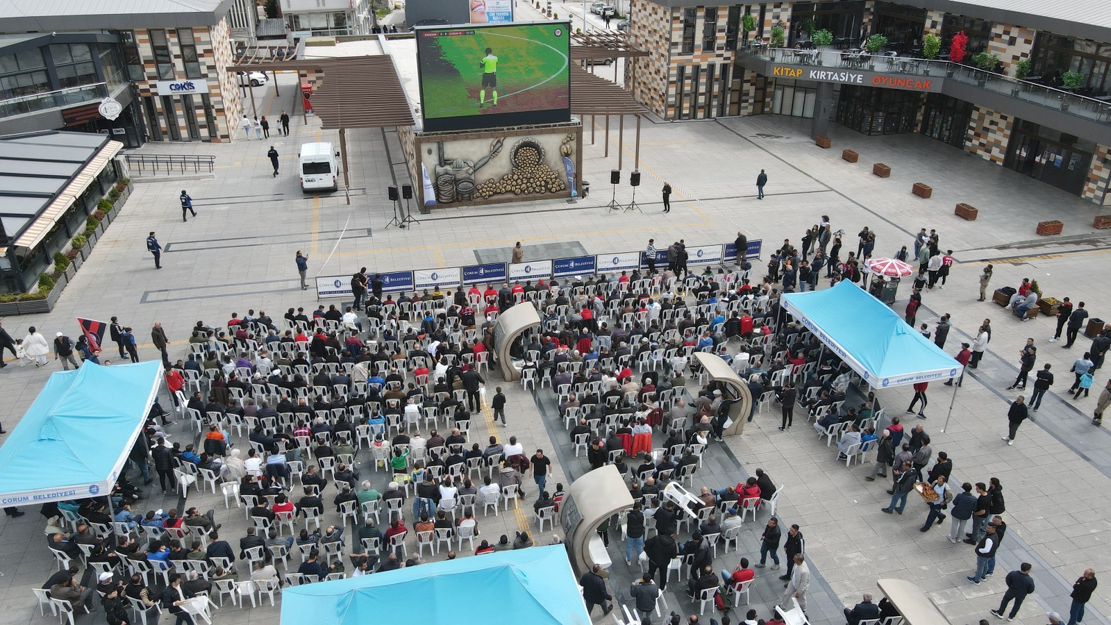 Çorum Belediyesi bu hafta da, Kadeş Barış Meydanı’na yeni kurduğu dev ekranda Çorum FK’nın maçını yayınladı.  Deplasmanda Menemen Belediyespor ile oynanan karşılaşmayı kırmızı siyahlı taraftarlarla birlikte Belediye Başkanı Dr. Halil İbrahim Aşgın da izledi.
