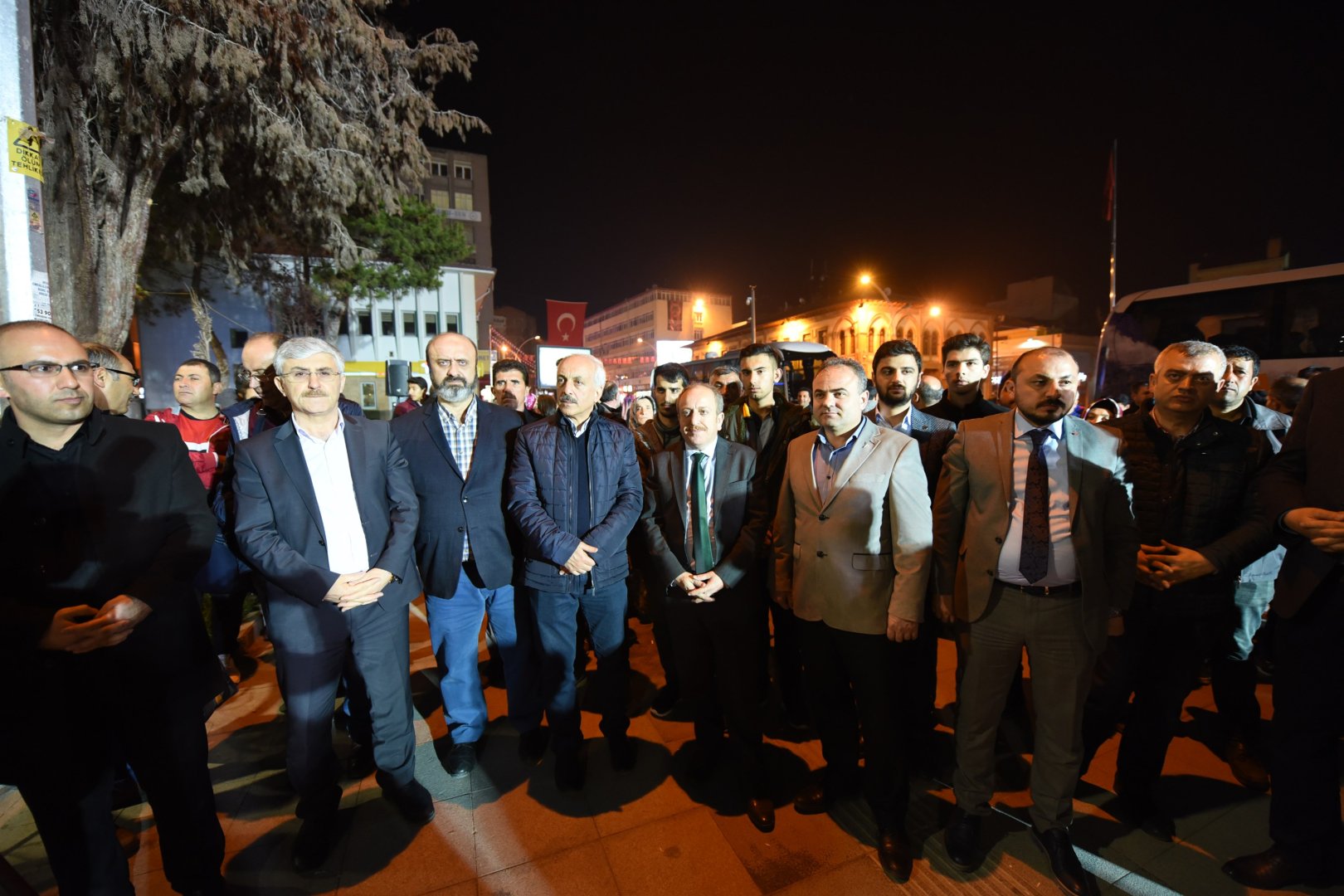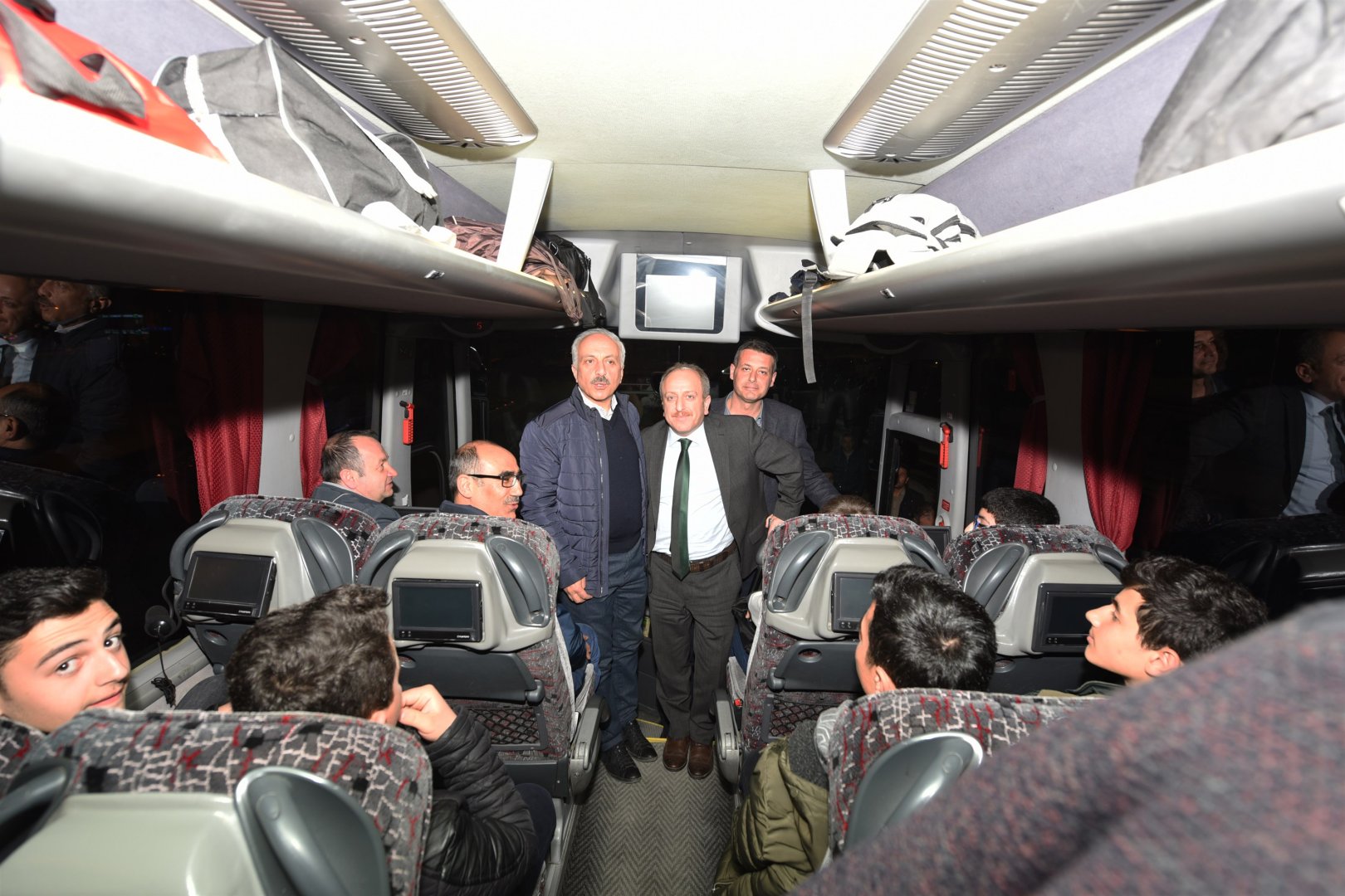 İlk kafileyi uğurlama programına Belediye Başkanı Zeki Gül, AK Parti İl Başkanı Mehmet Karadağ, Belediye Meclis Üyeleri, Belediye Başkan Yardımcıları, Belediye Birim Müdürleri, Kurum Müdürleri, AK Parti İl Yönetimi, mahalle muhtarları, öğrenciler ve veliler katıldı.