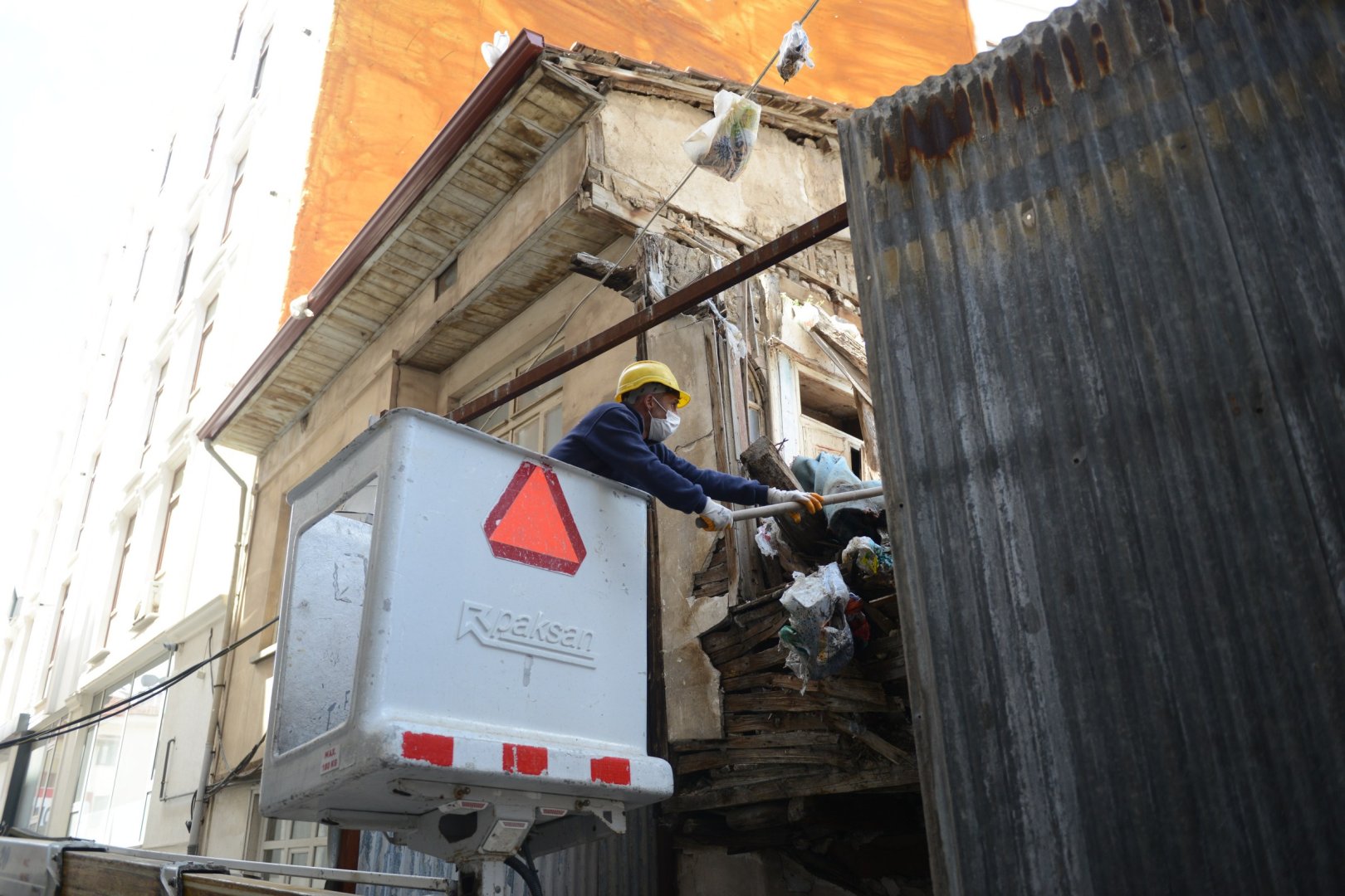 Encümen kararıyla mevcut çöplerin haşere üretmesi, sağlığı tehdit eden diğer unsurların ortaya çıkması ve çevre bina sakinlerinin sağlığını tehdit etmesi sebebiyle ivedi olarak boşaltılması ve çöplerin bertaraf edilmesi yönünde karar alındı. Temizlik İşleri ekiplerinin tarihi binada yaptıkları çalışmayla çöpleri temizlemesinin ardından ilaçlama yapılarak çöplerin atıldığı apartmanlara tebligat bırakıldı.