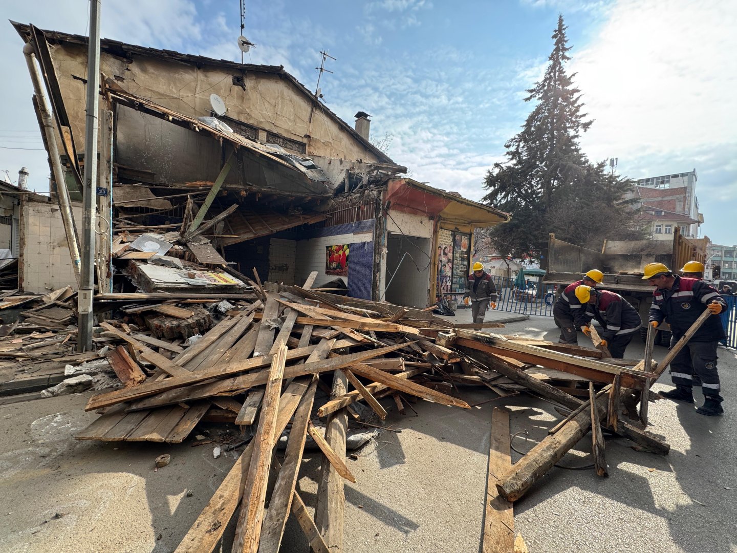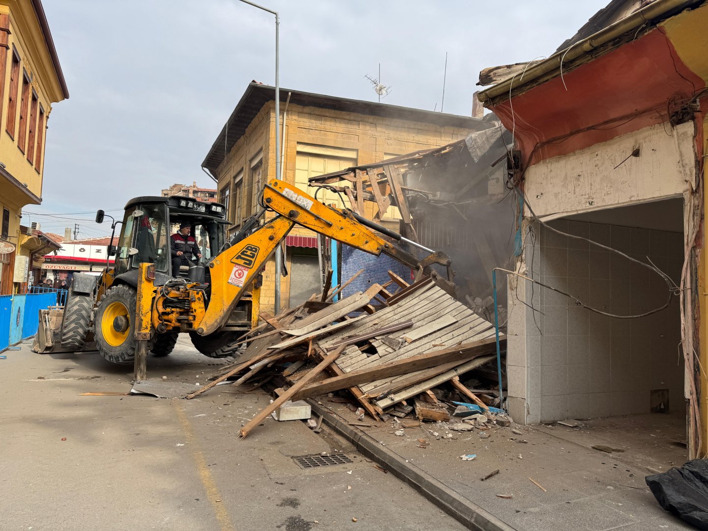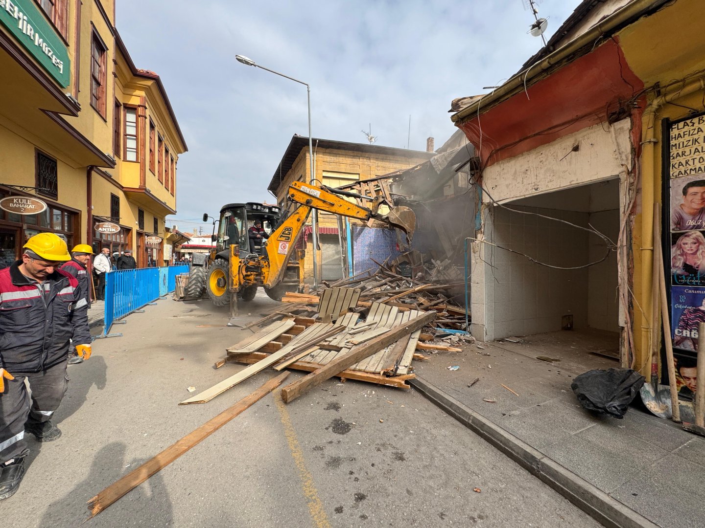 Saat Kulesi civarında bulunan balıkçı esnafının Geçici Balıkçılar Çarşısı’na taşınmasının ardından boşaltılan dükkanlarda yıkım çalışması başladı.