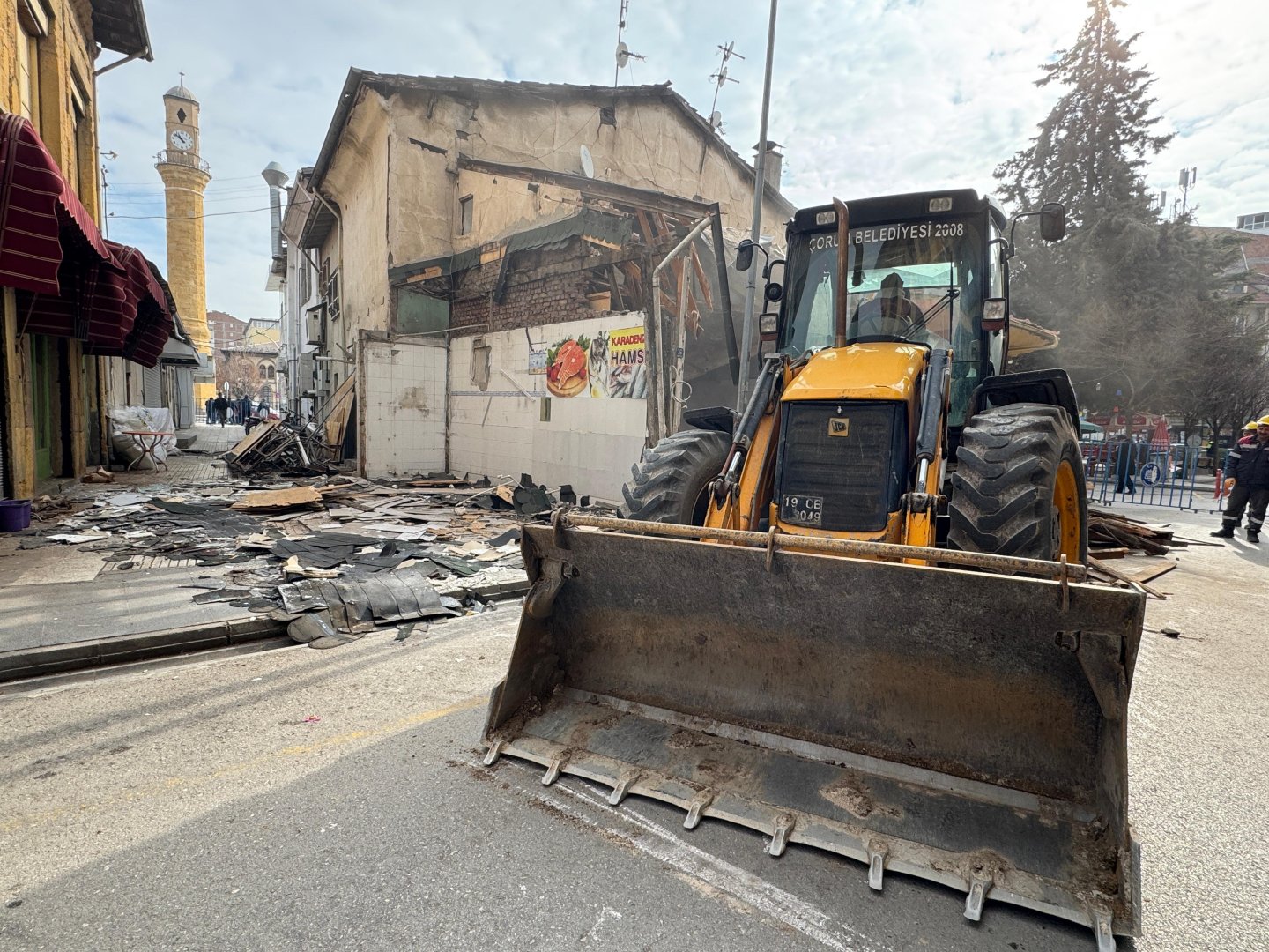 Çorum’un en önemli tarihi yapılarından Veli Paşa Hanı’nın tamamen ortaya çıkmasını ve Saat Kulesi ile bir bütün olmasını sağlayacak olan tarihi meydan projesinde ikinci etap çalışmaları aralıksız sürüyor. Belediye Başkanı Dr. Halil İbrahim Aşgın’ın seçim projeleri arasında yer alan tarihi meydanın ikinci etap çalışmaları kapsamında Saat Kulesi civarında bulunan balıkçı esnafının Geçici Balıkçılar Çarşısına taşınma işlemleri tamamlanırken, Fen İşleri Müdürlüğü’ne bağlı ekipler de boşaltılan dükkanlarda yıkım işlemlerine başladı.